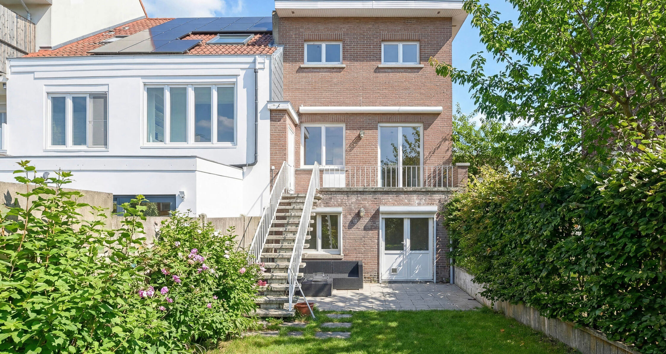 Bright L-shaped living room of +/-35 m² with open fireplace, fully equipped open kitchen with breakfast area, terrace with access to the south-west facing garden of +/-75 m² with garden shed.
