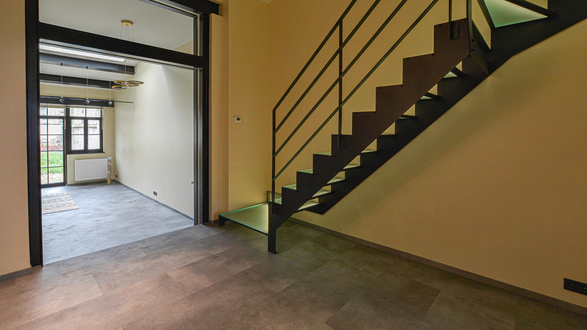 This duplex +/-135 m², located on the ground floor and first floor of a building with two apartments, is composed as follows: