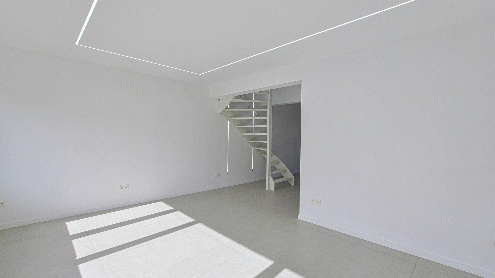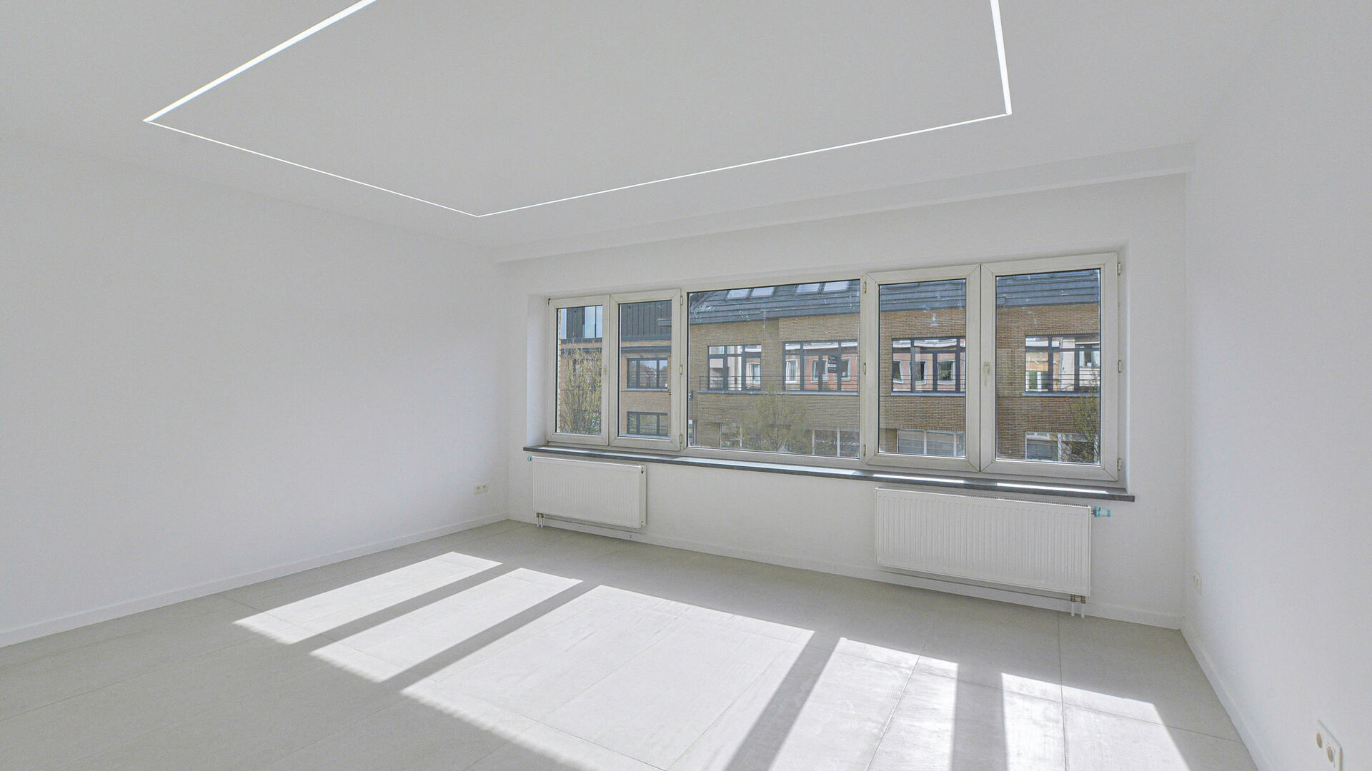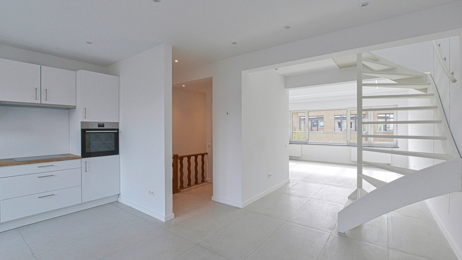 This bright duplex +/- 113m², available for first occupancy after renovation, is located on the second floor (no elevator) and is composed as follows: