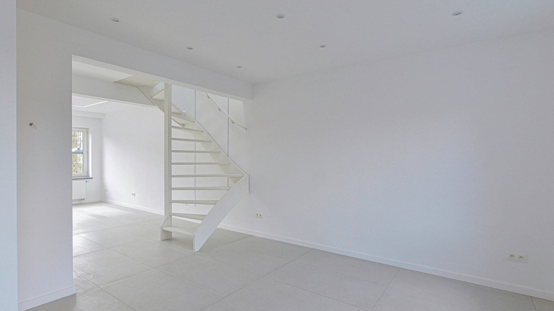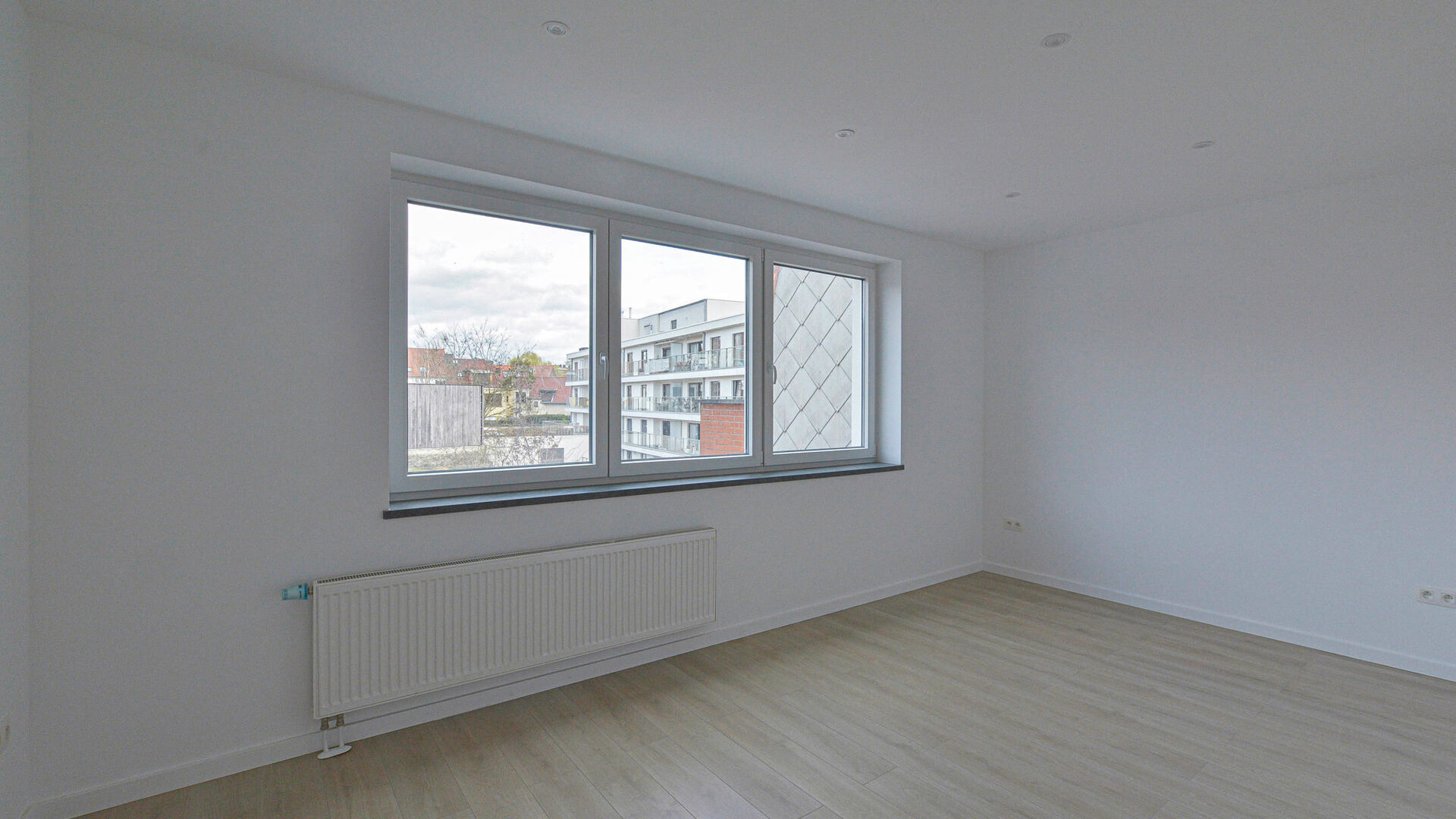 Entrance hall with separate WC // bright living room ±20m² // dining room ±12.5m² // semi-equipped open kitchen (electric hob, oven, dishwasher (no fridge)) with access to the rear terrace ±9m²