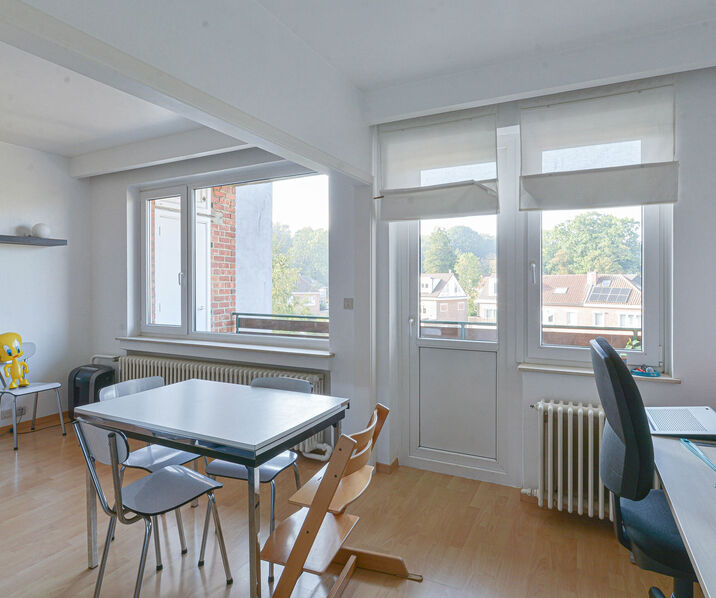 Entrance hall with separate toilet and cloakroom, a bright living and dining room of +/-20m² giving access to lovely southwest-facing terrace with open view and two built-in storage cupboards, a fully fitted kitchen (hob, oven, dishwasher, refrigerator), two comfortable bedrooms of 13 m² and 9 m², and a bathroom with bathtub with shower and connection for a washing machine and dryer. The apartment also comes with a private cellar and access to a shared bicycle room. Extra information: Double glazing, a collectif heating on oil, electric boiler for hot water, monthly charges of €100/month (€70 provision for heating and a €30 for maintenance of common areas). Available from 30 October 2025. For further details or to arrange a viewing, please contact us on 02.771.16.35 or at info@maxime-realestate.be. All details and measurements are provided for information purposes only and have no contractual value.