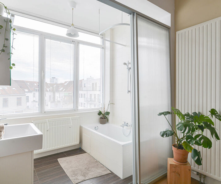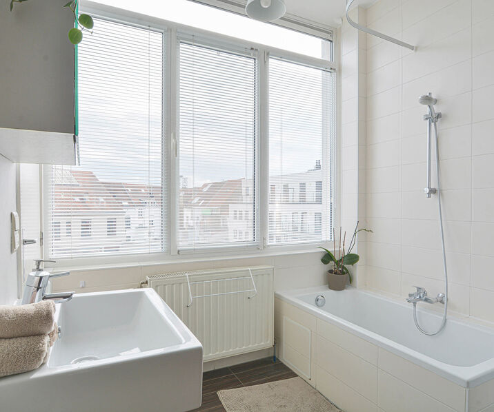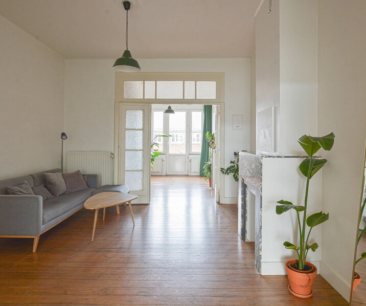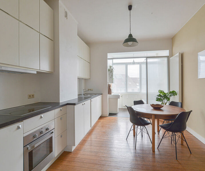 In addition, public transport (metro, tram, bus) and Brussels Central Station are easily accessible. This pleasant apartment +/- 85m² is ready to move in and located on the fourth floor.