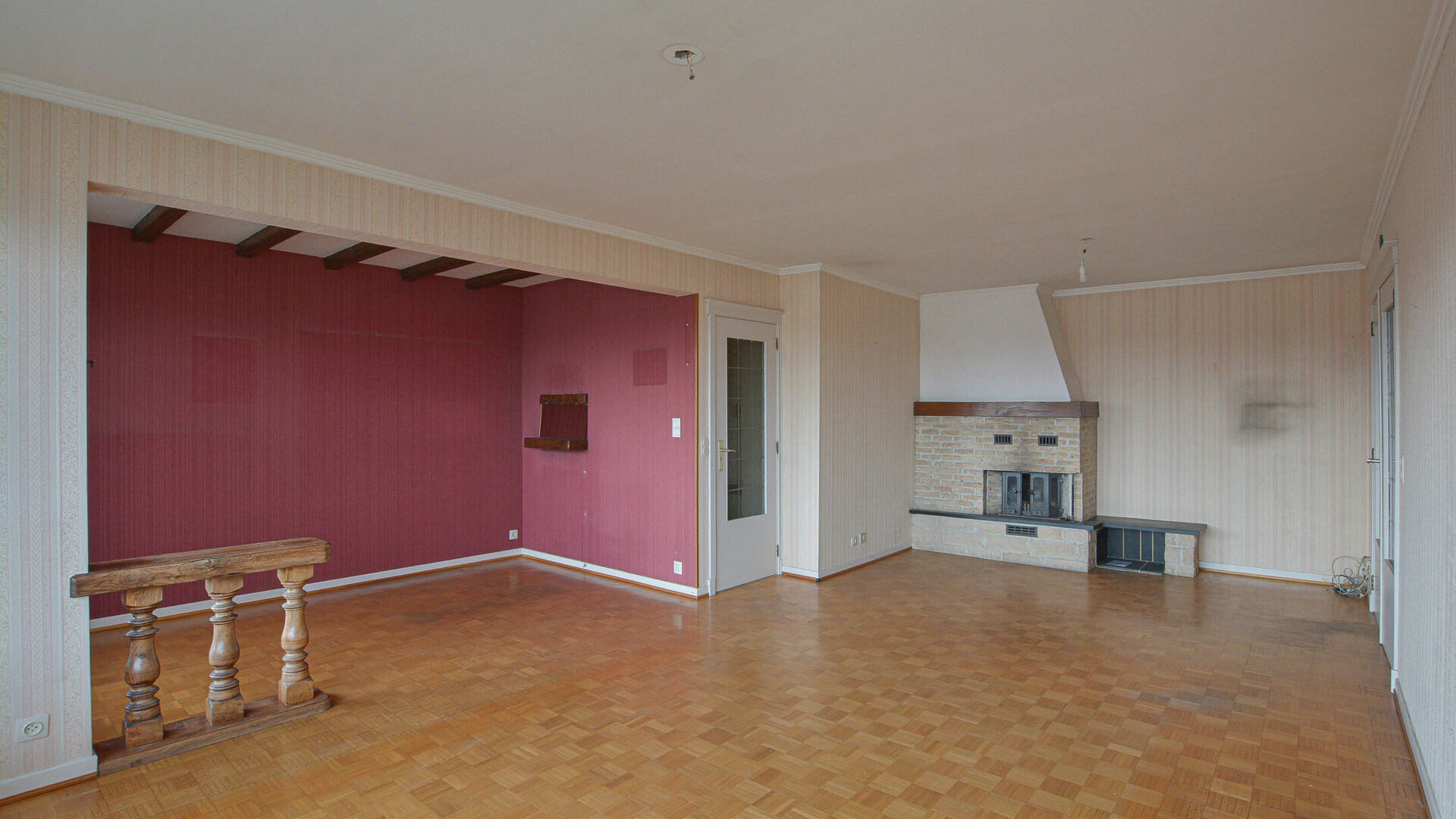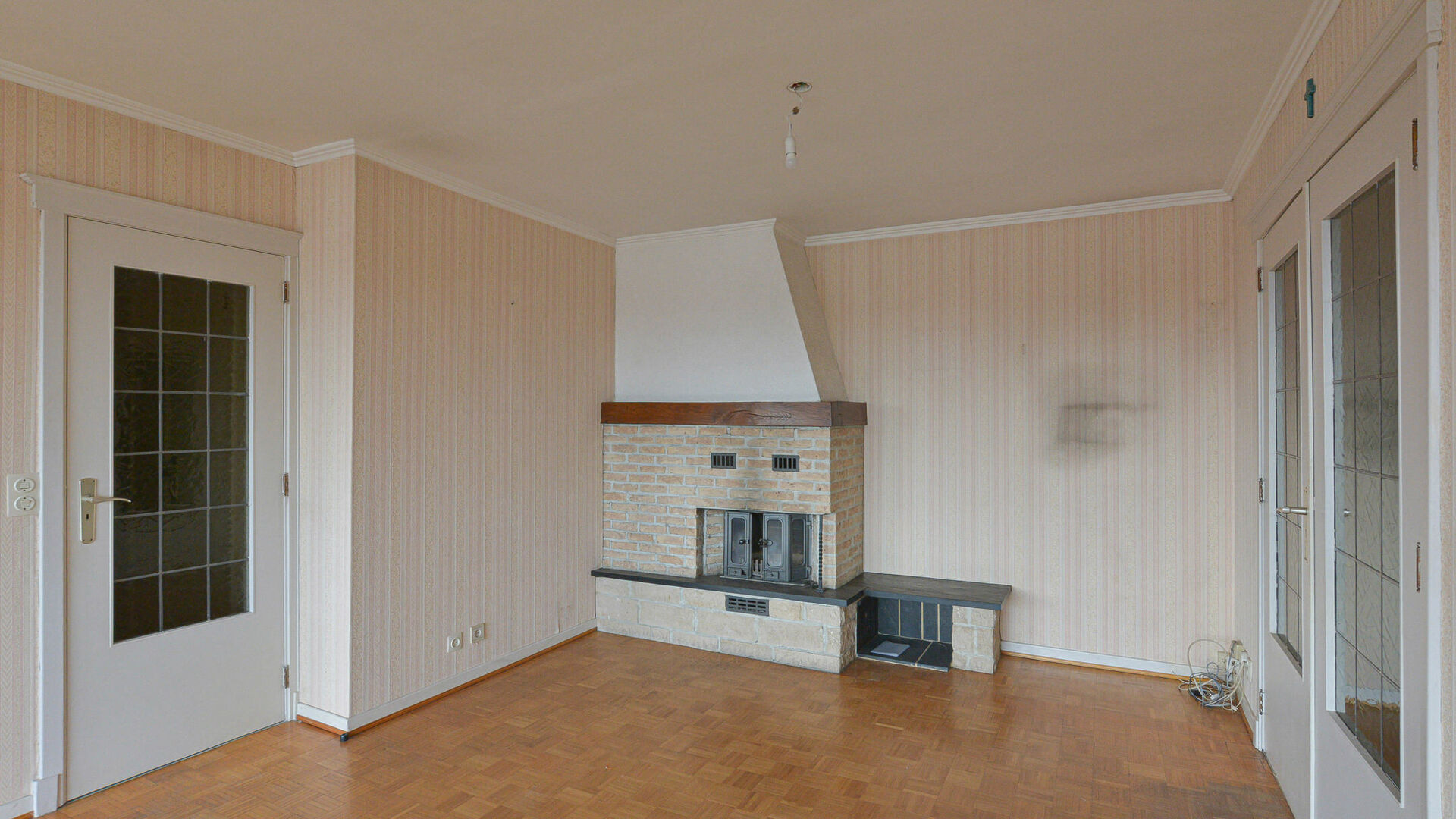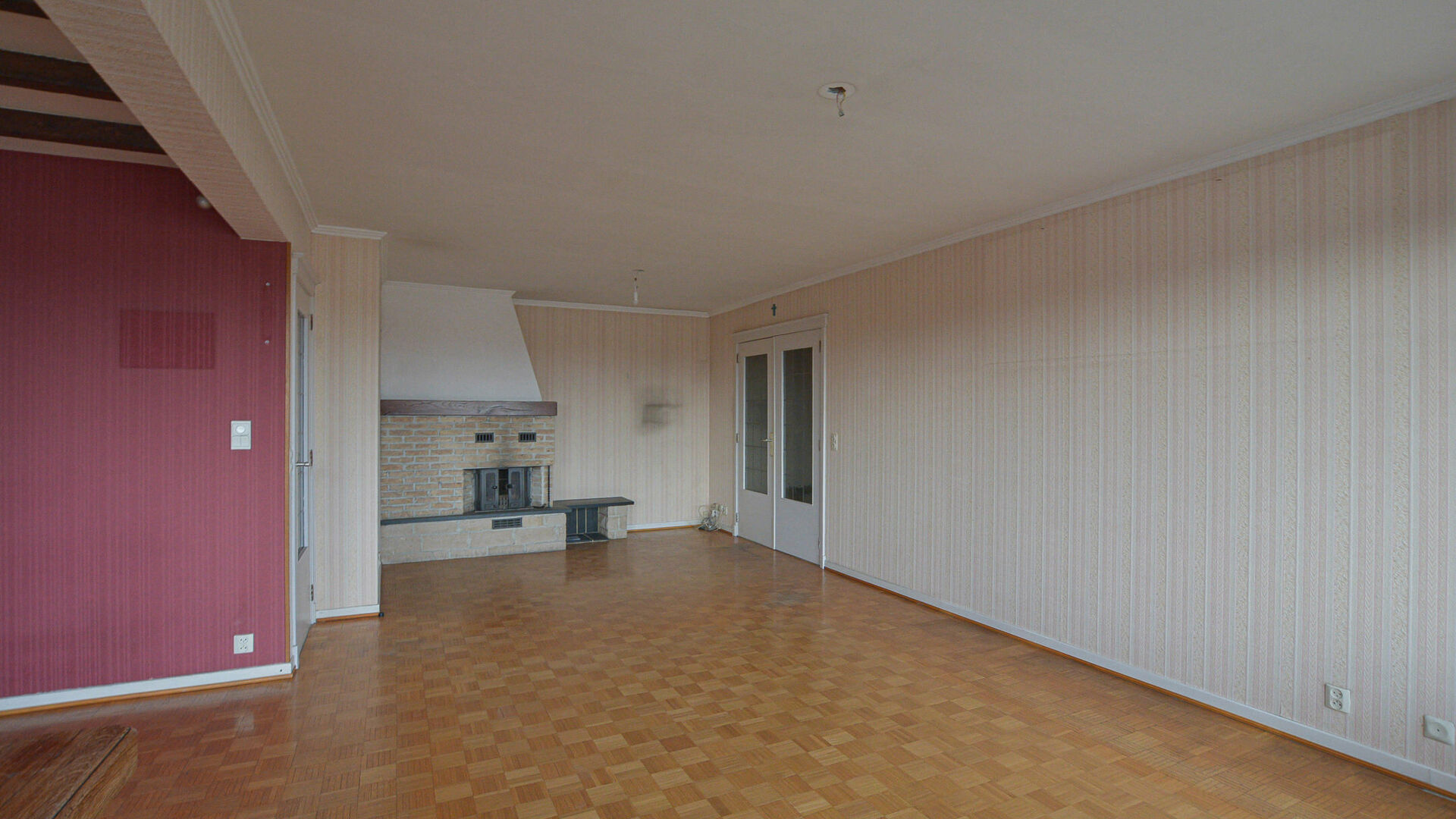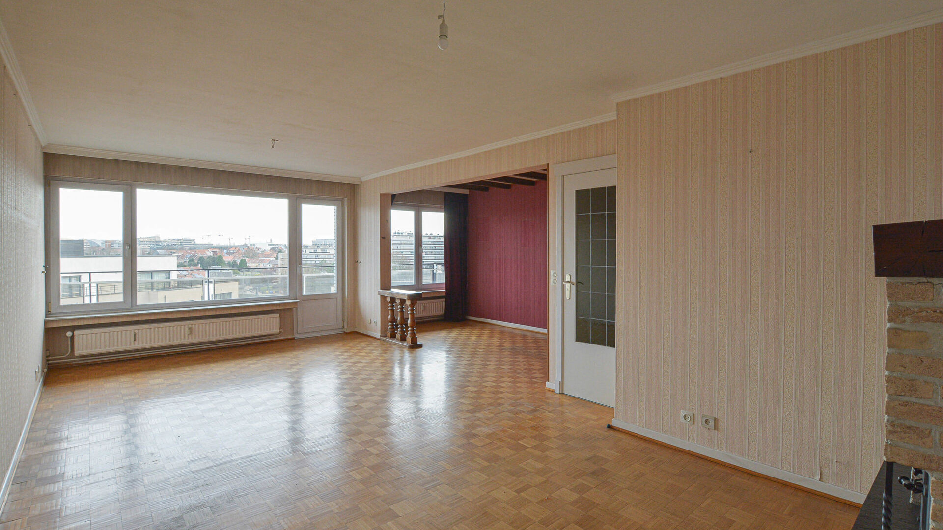 Entrance hall with closets and coat area // bright living room +/- 30m² with access to the east-facing terrace // separate kitchen // night hall with separate toilet // 2 bedrooms of approximately 12,8-9,2m², the largest with access to the terrace // bathroom with bathtub and sink // a cellar // indoor parking space/garage.