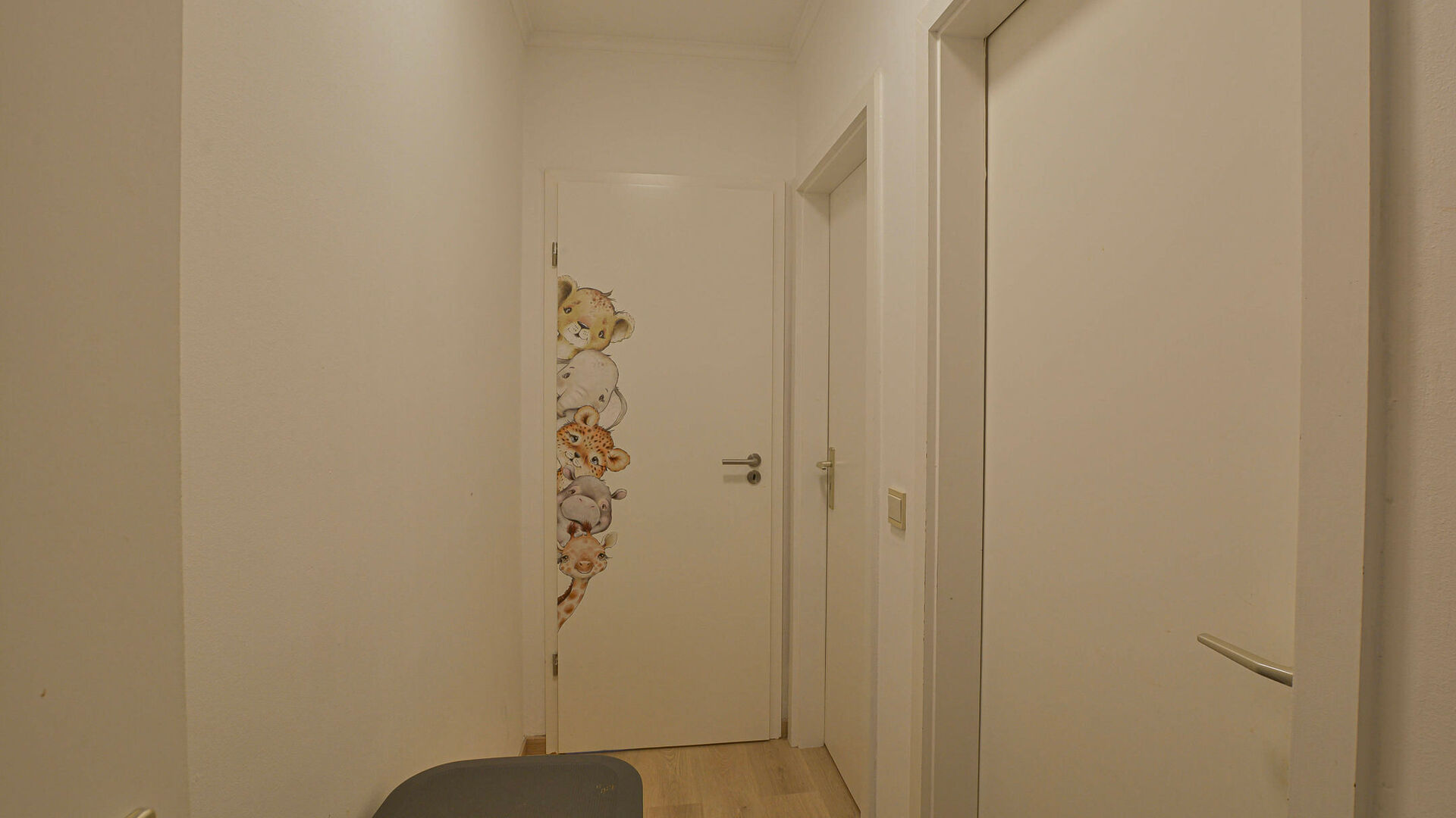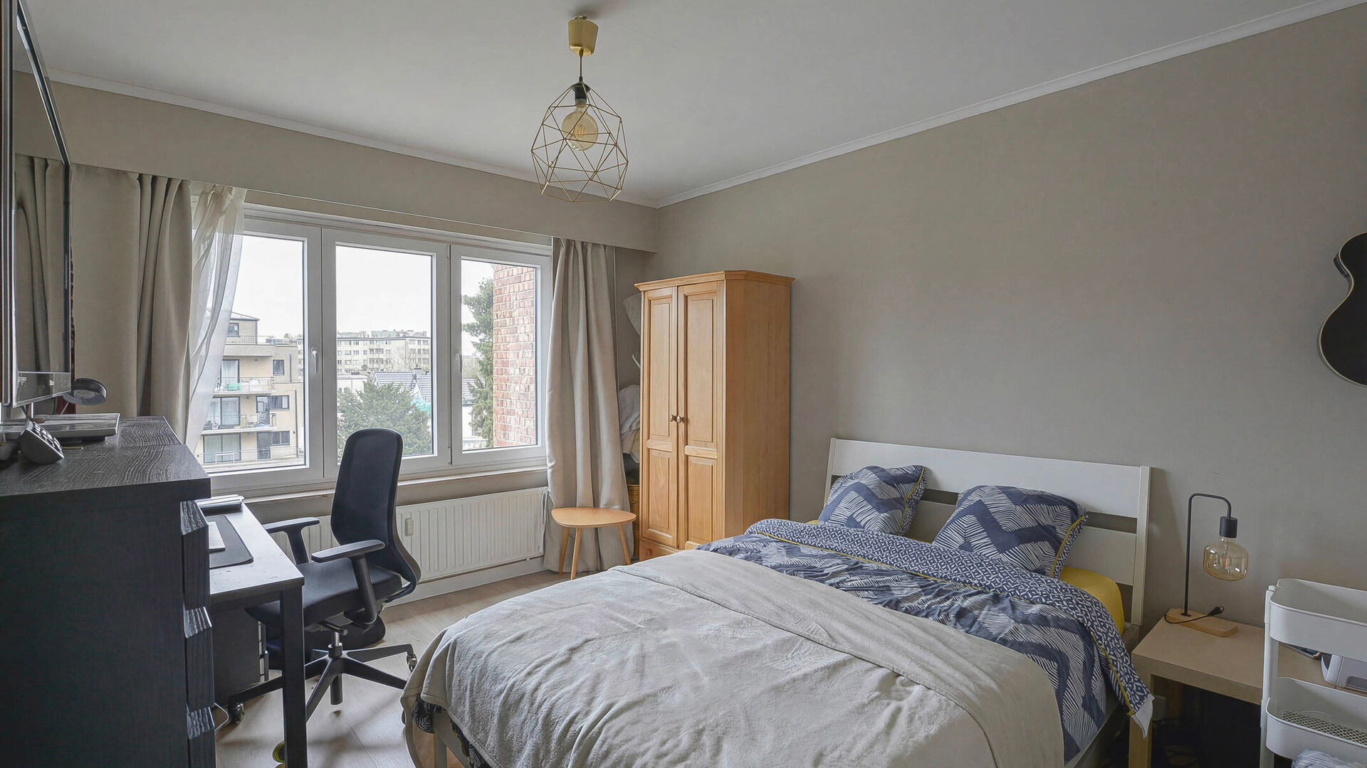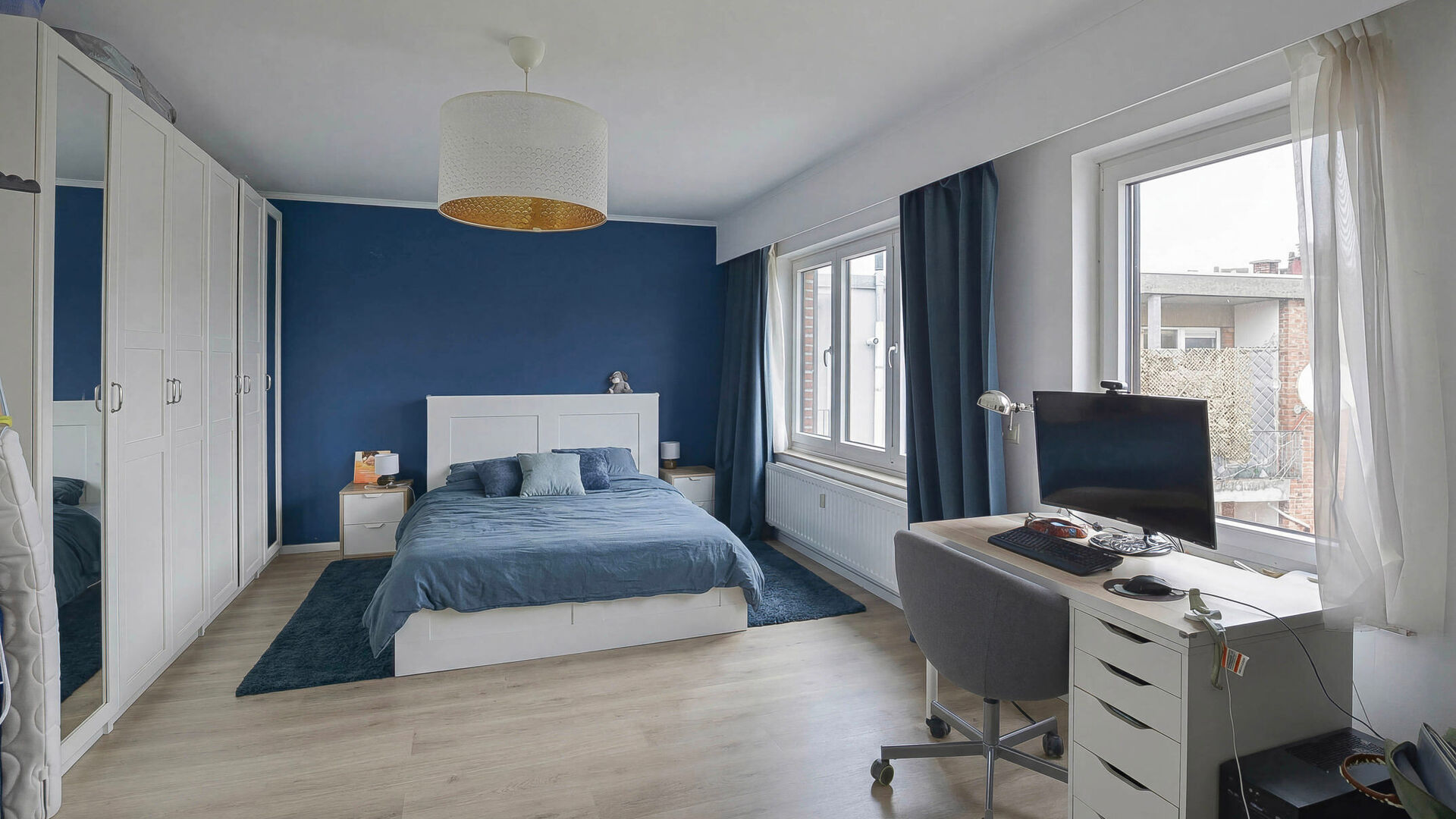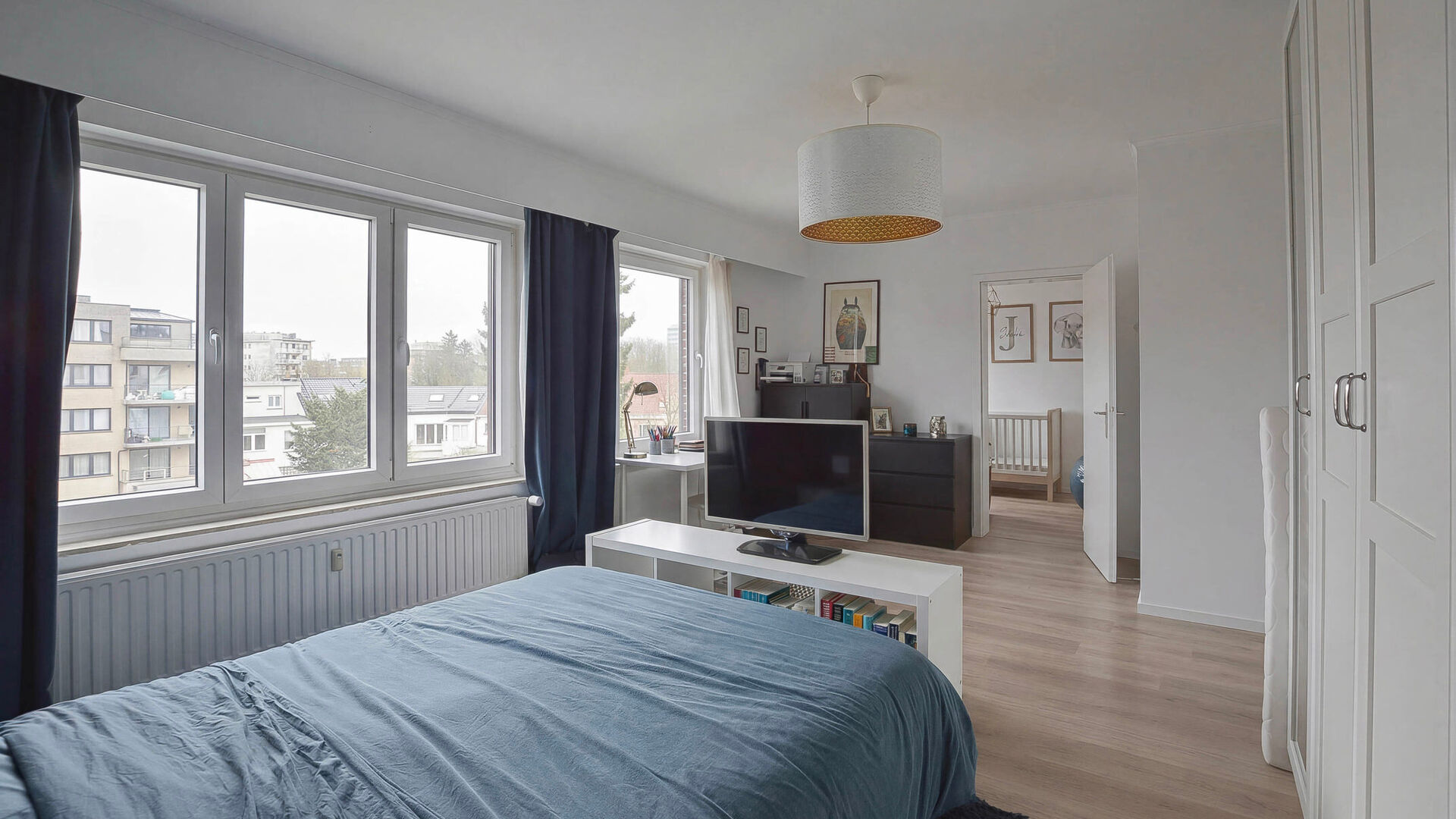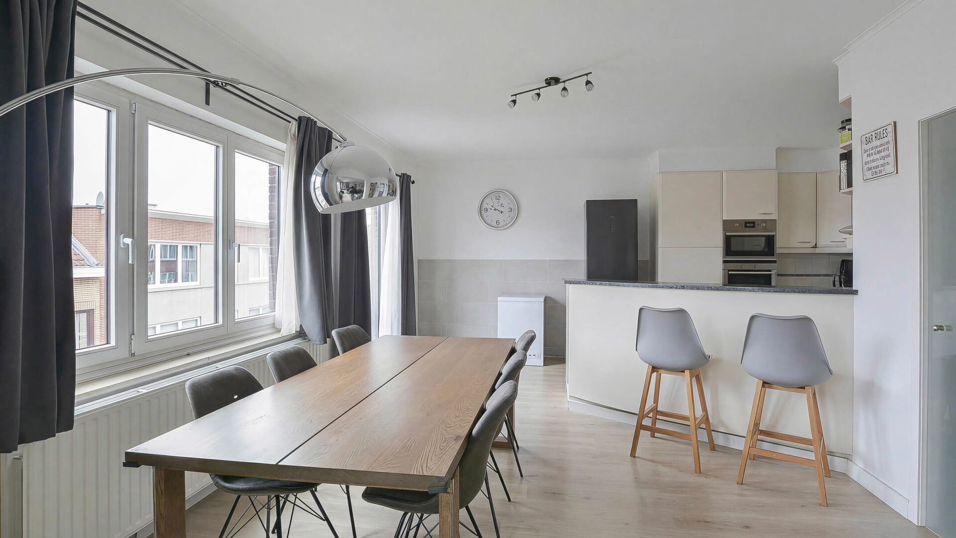 Entrance hall with cloakroom area, bright living room of +/-50 m² with a fully equipped open kitchen, 2 spacious bedrooms of +/-20 m² and 14 m², renovated bathroom (walk-in shower, toilet, sink, and connections for a washing machine/dryer), 3rd bedroom suitable for a child or office of +/-7 m², and a second bathroom (bathtub, sink, and toilet).
