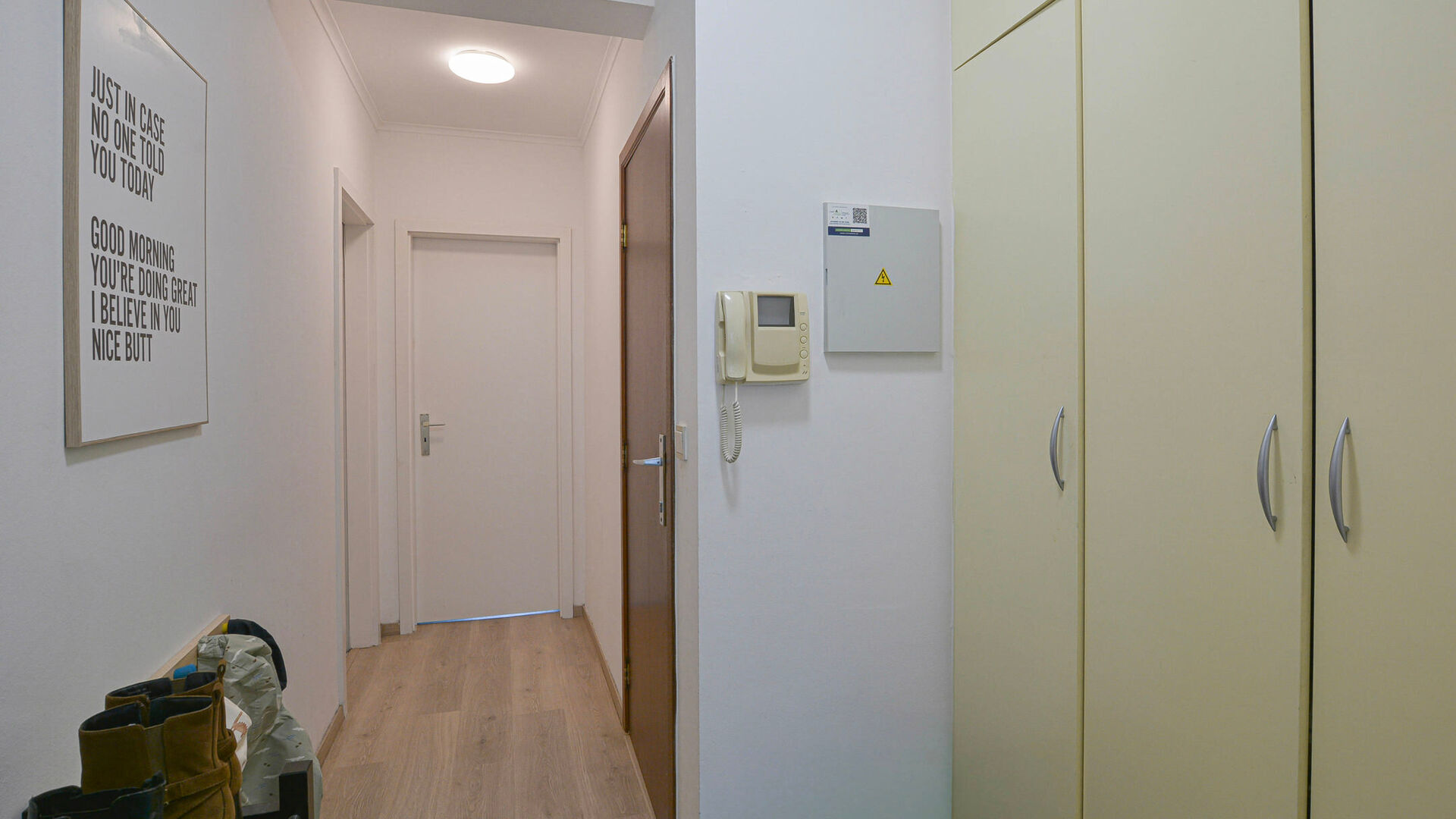 Two cellars and a mandatory garage box + €30.000 are sold with the apartment.