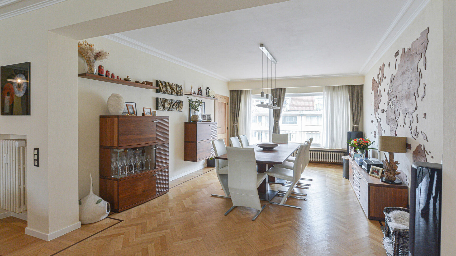 This tastefully renovated, spacious apartment of +/- 152m² (according to energy rate) is located on the 4th floor and is composed as follows: