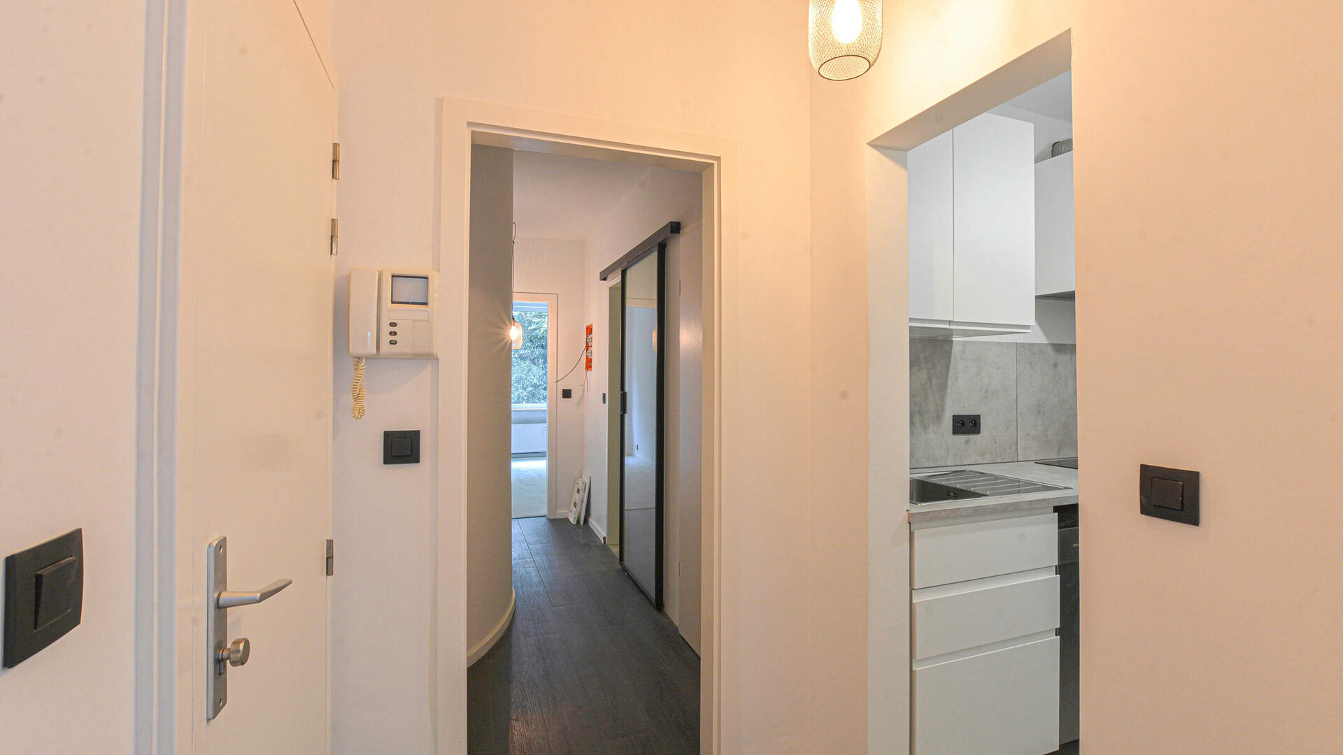 Entrance hall // separate toilet // living room +/- 20m² with access to a south-west facing terrace +/- 12m² // fully equipped kitchen (fridge, freezer, oven, induction hob, dishwasher) // 2 bedrooms +/- 14.5m² and 11m² // shower room (shower and sink) // cellar with washing machine connection.