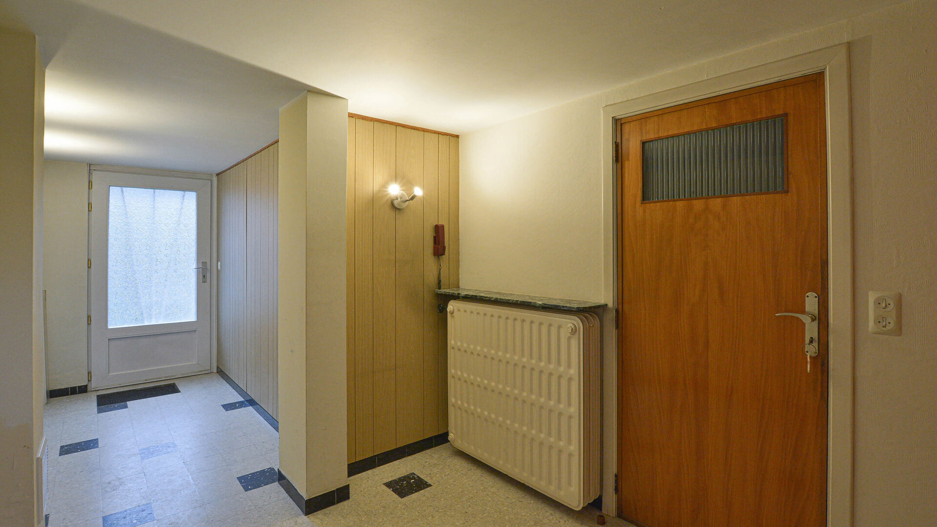 Ground floor: Entrance hall, storage cellar with laundry area, as well as a one-car garage and an outdoor parking space on the driveway.