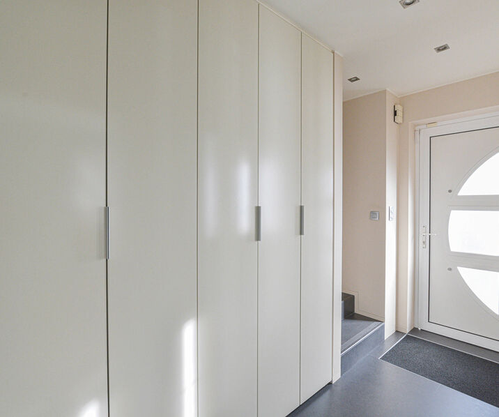 On the ground floor, the entrance hall with guest toilet leads to a bright and spacious living and dining area with an open-plan kitchen, fully equipped in 2023 (induction hob, extractor hood, 2 ovens, dishwasher, fridge). This welcoming space opens onto a beautifully landscaped terrace with a pond, lounge area, garden shed, a large garage, and parking space at the front. The first floor includes a landing, two comfortable bedrooms (±17 m² and ±10 m²) – one currently used as a dressing room – and a modern bathroom featuring a walk-in shower and vanity unit. The basement is fully functional, offering converted cellar spaces used as an office and storage areas with a technical room. The attic provides great potential for conversion into a third bedroom and second bathroom, depending on your needs and projects. This house stands out for its complete renovation, excellent condition, and numerous assets: