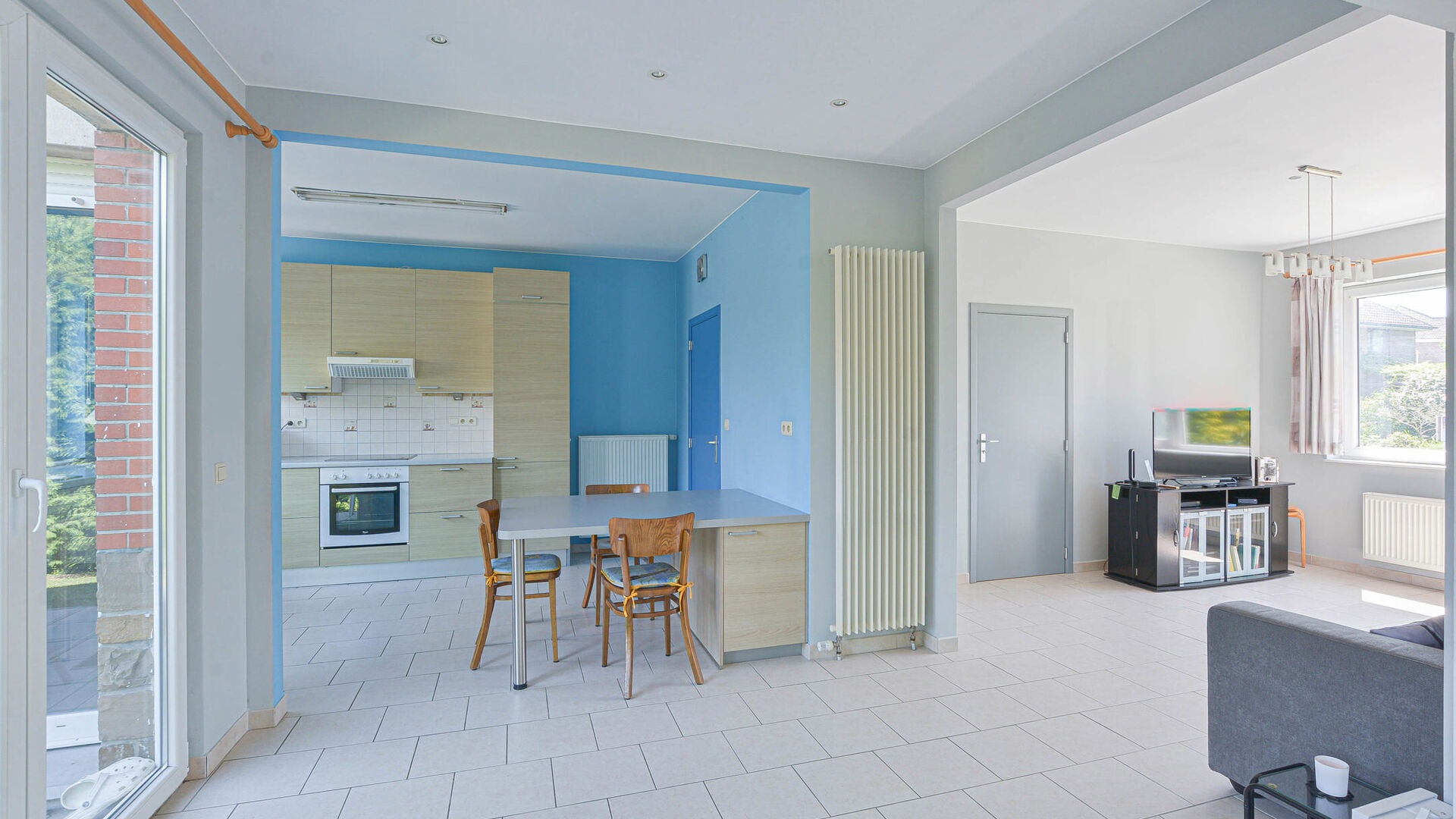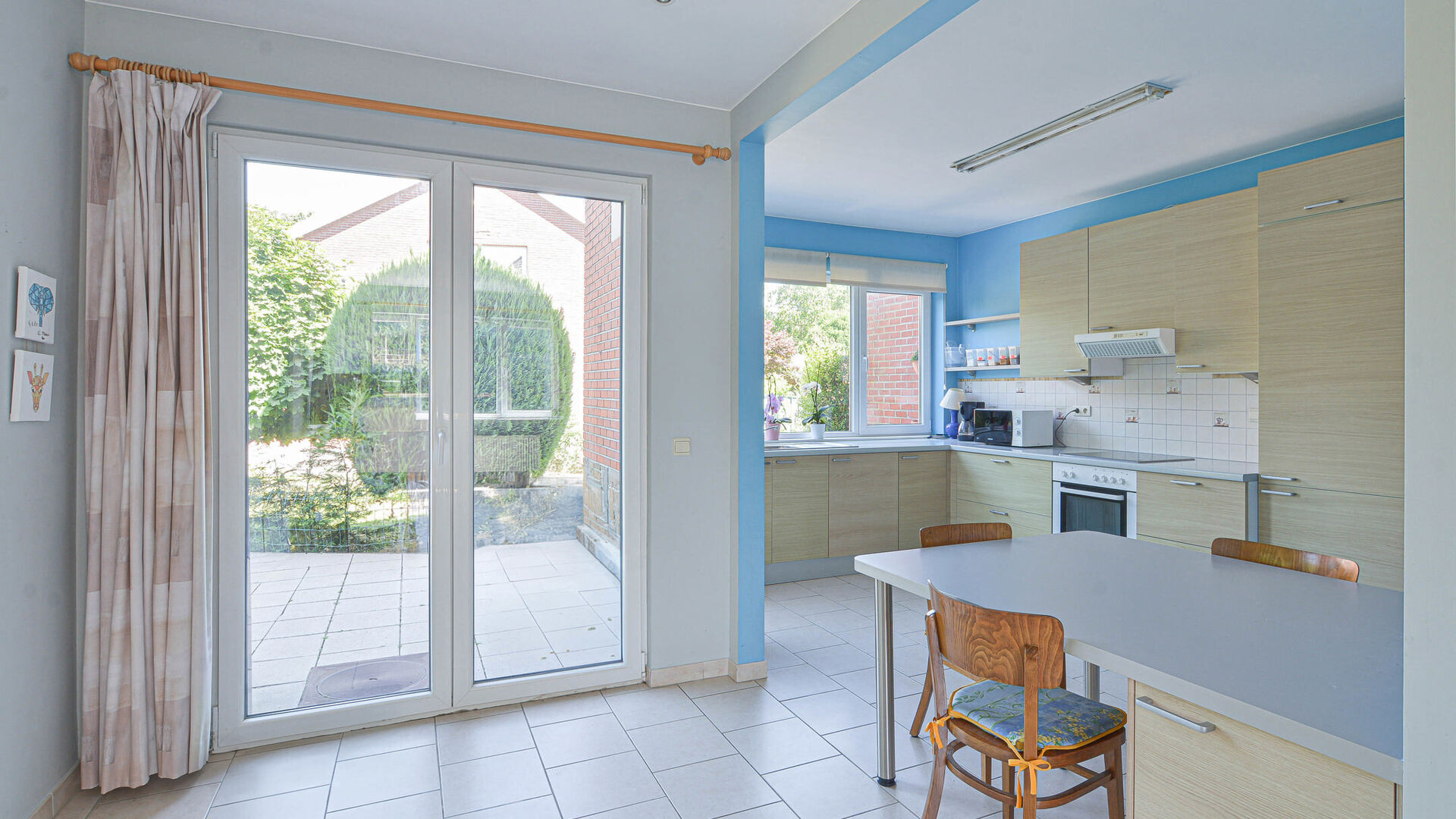 The ground floor features an entrance hall with guest toilet and cloakroom area, a bright living and dining area +/- 35 m² opening onto a the terrace and private garden, as well as a spacious, fully equipped open kitchen with breakfast corner.