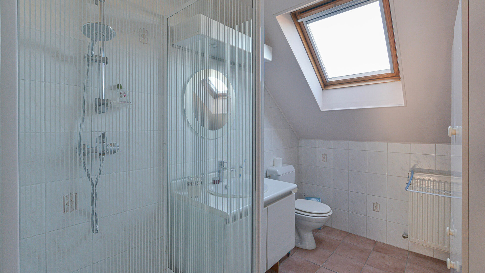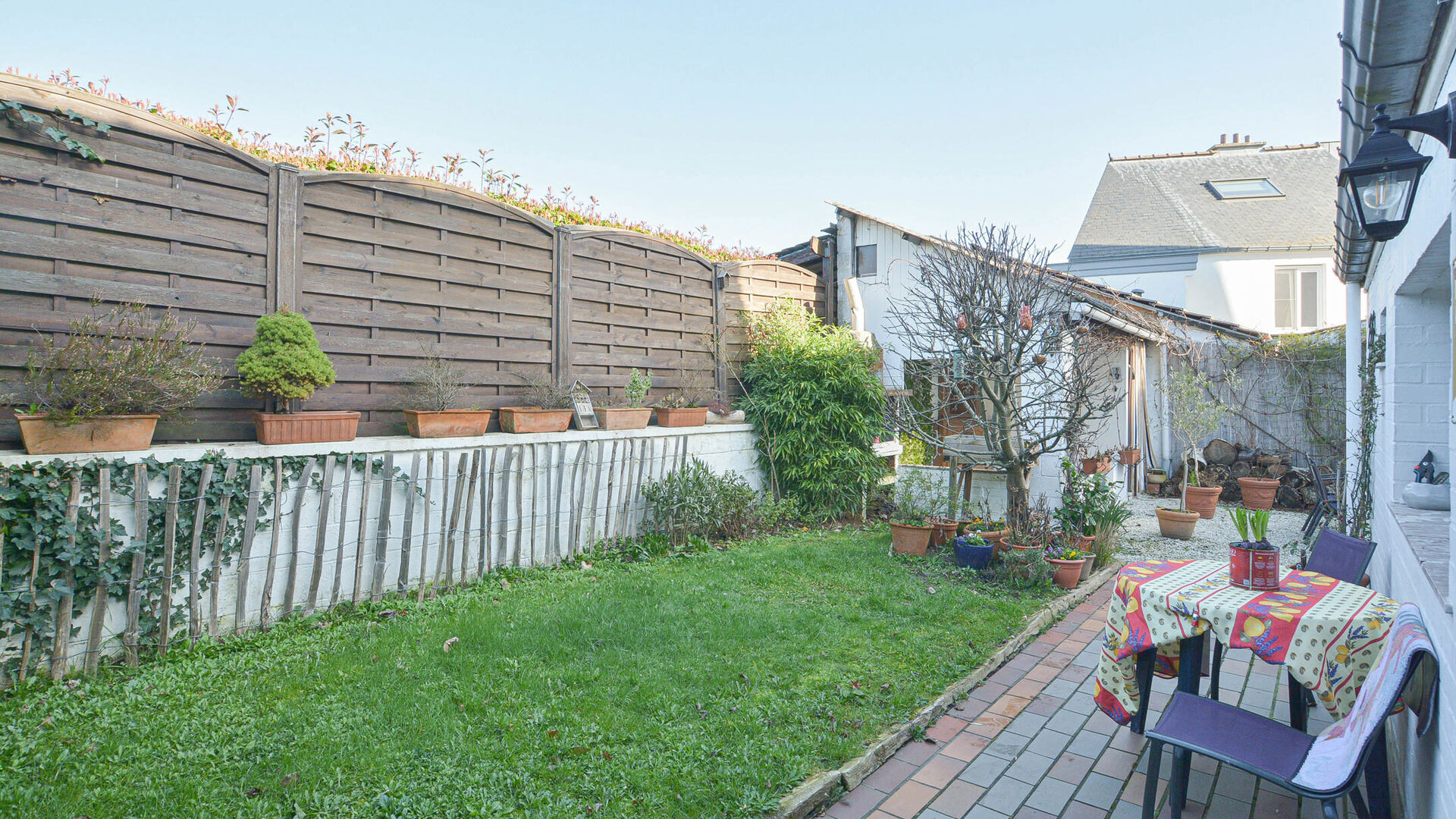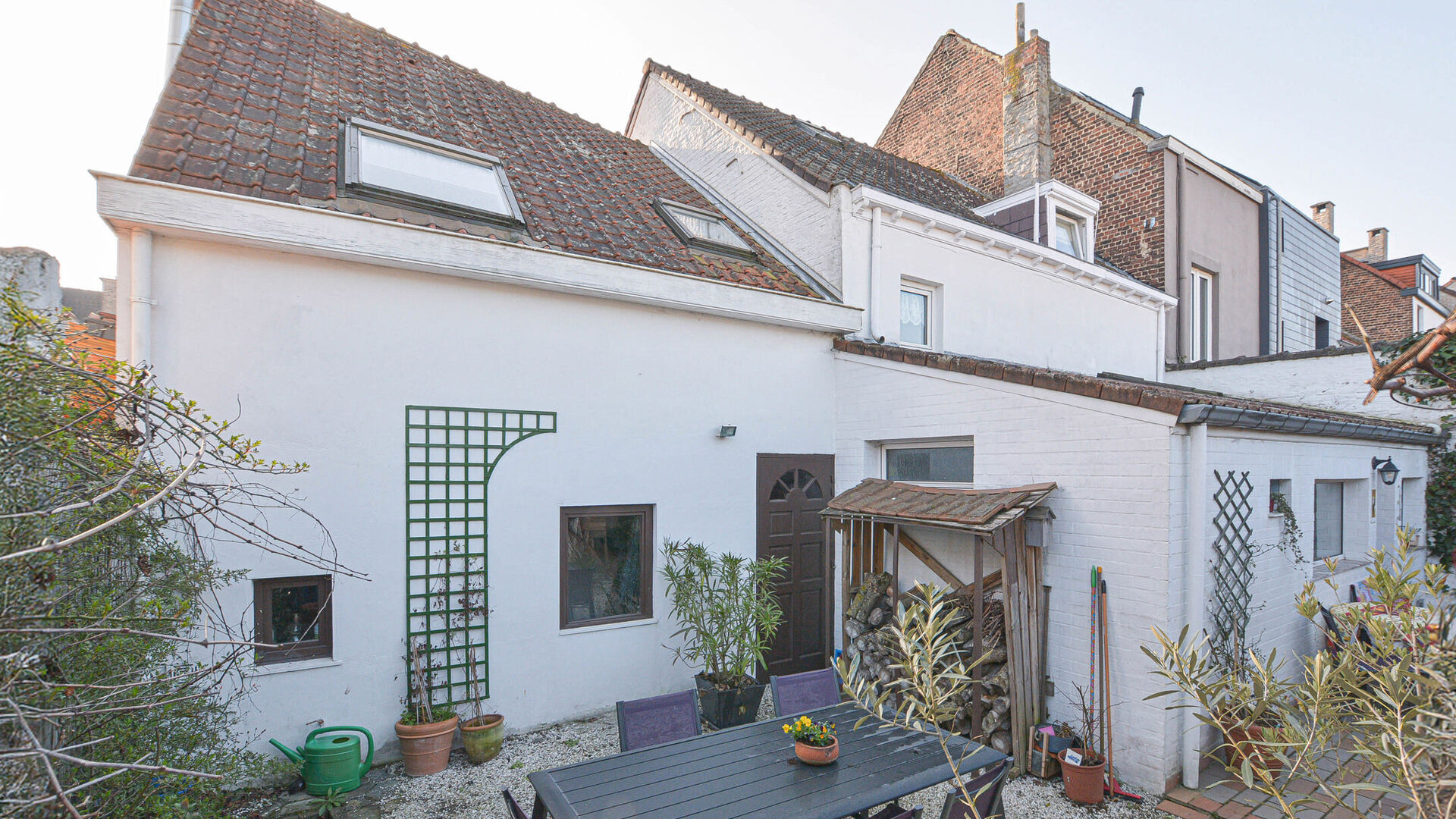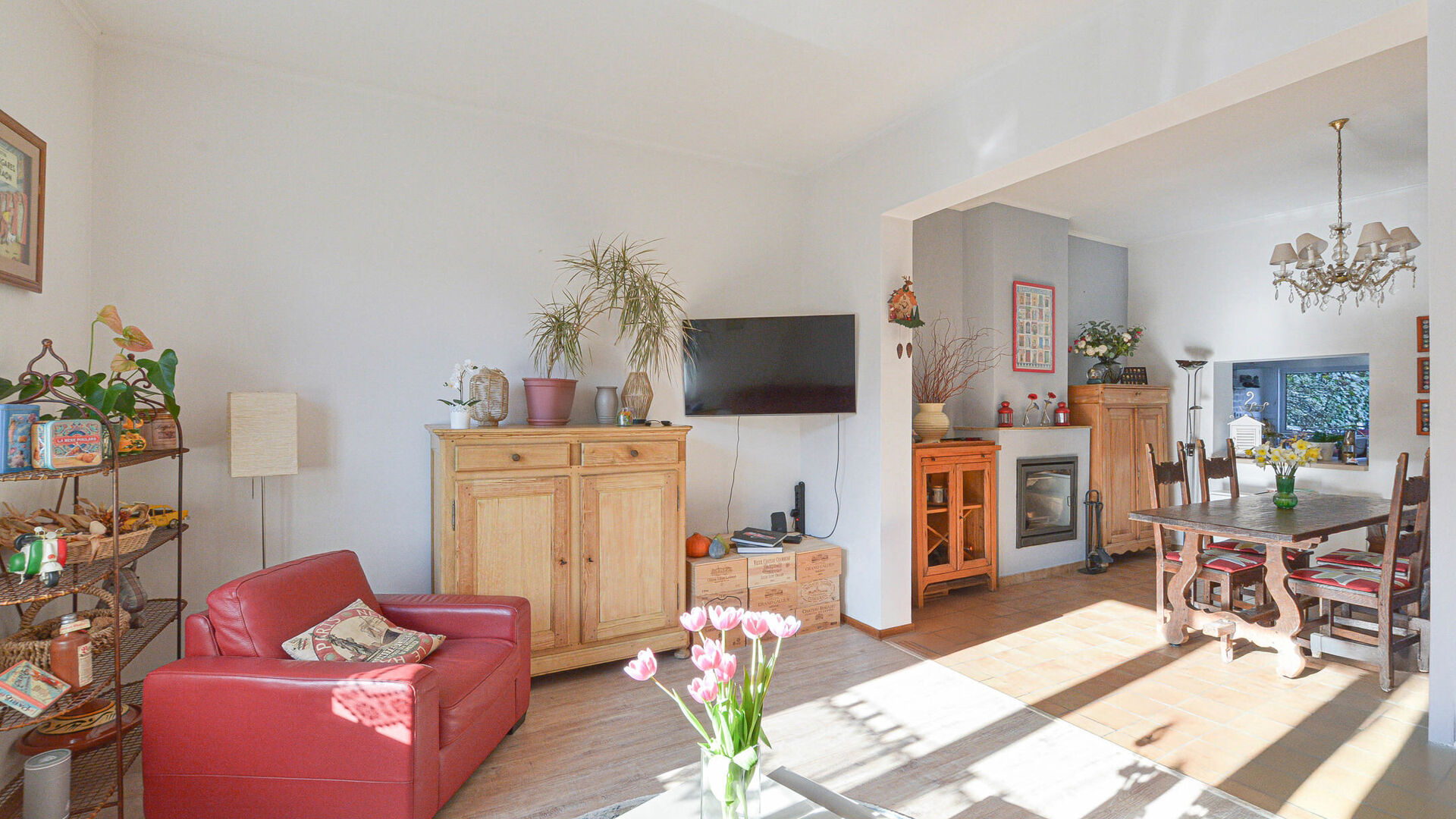 This charming house of +/-169 m² (according to energy certificate) is built on a plot of 1a95ca and is laid out as follows: Ground floor: entrance hall, bright living-dining room of +/-38 m² with fireplace, modern fully equipped kitchen with access to the garden and 2 pleasant terraces. On the ground floor, you will also find a first bathroom (bathtub with shower, sink, and toilet), a laundry room, and a garage.