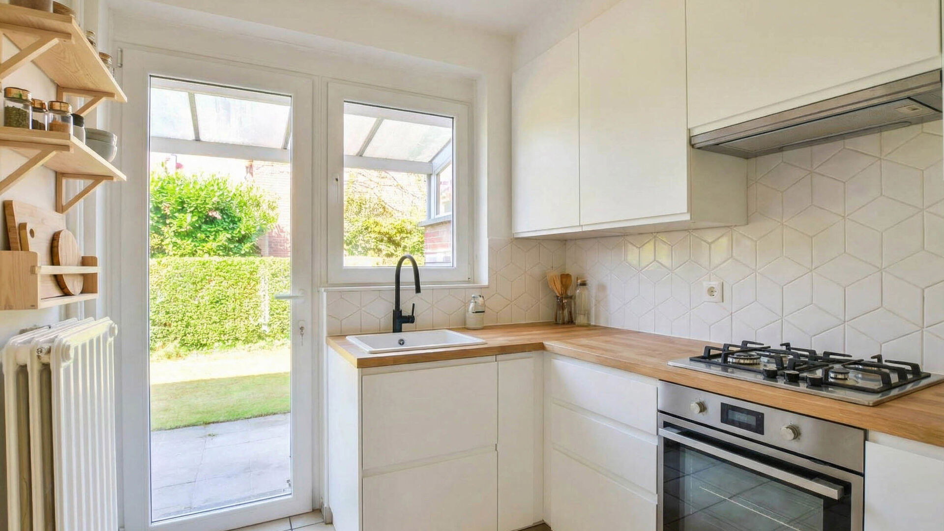Ground floor: Entrance hall // separate toilet // living/dining room ±25 m² // fully equipped kitchen // terrace ±12 m² and garden