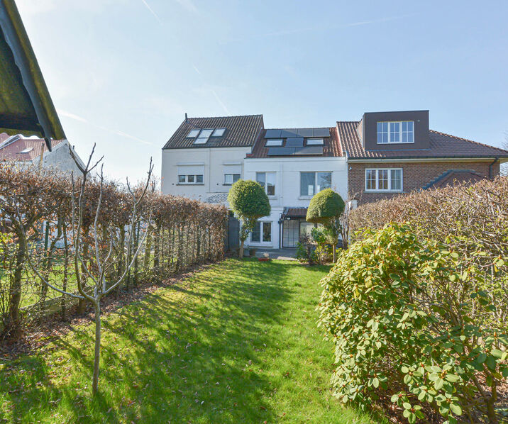 - Ground floor: Entrance hall with separate toilet, bright living and dining room of +/-30 m², equipped kitchen with direct access to a pleasant private terrace and an adjoining garden with garden shed.