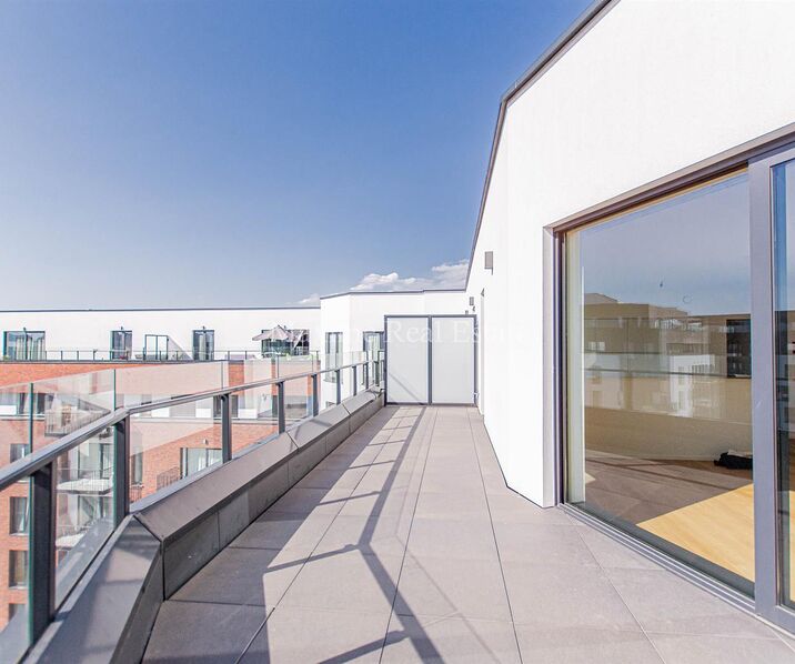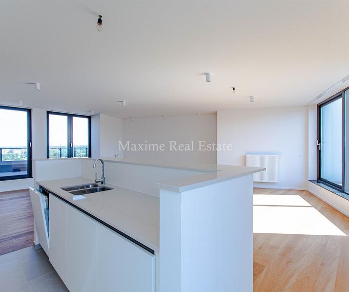 Magnificent Penthouse of +/- 137m², located on the 8th floor of a 2017 building. Composed of: Entrance hall with separate toilet and utility room, living, dining room +/- 45m² with a super equipped open kitchen (hobs, oven, dishwasher, fridge/freezer). Master bedroom of 14m² + Shower room, 2 bedrooms of +/- 10m², bathroom with bath, sink and toilet, 2 large terraces with magnificent views.