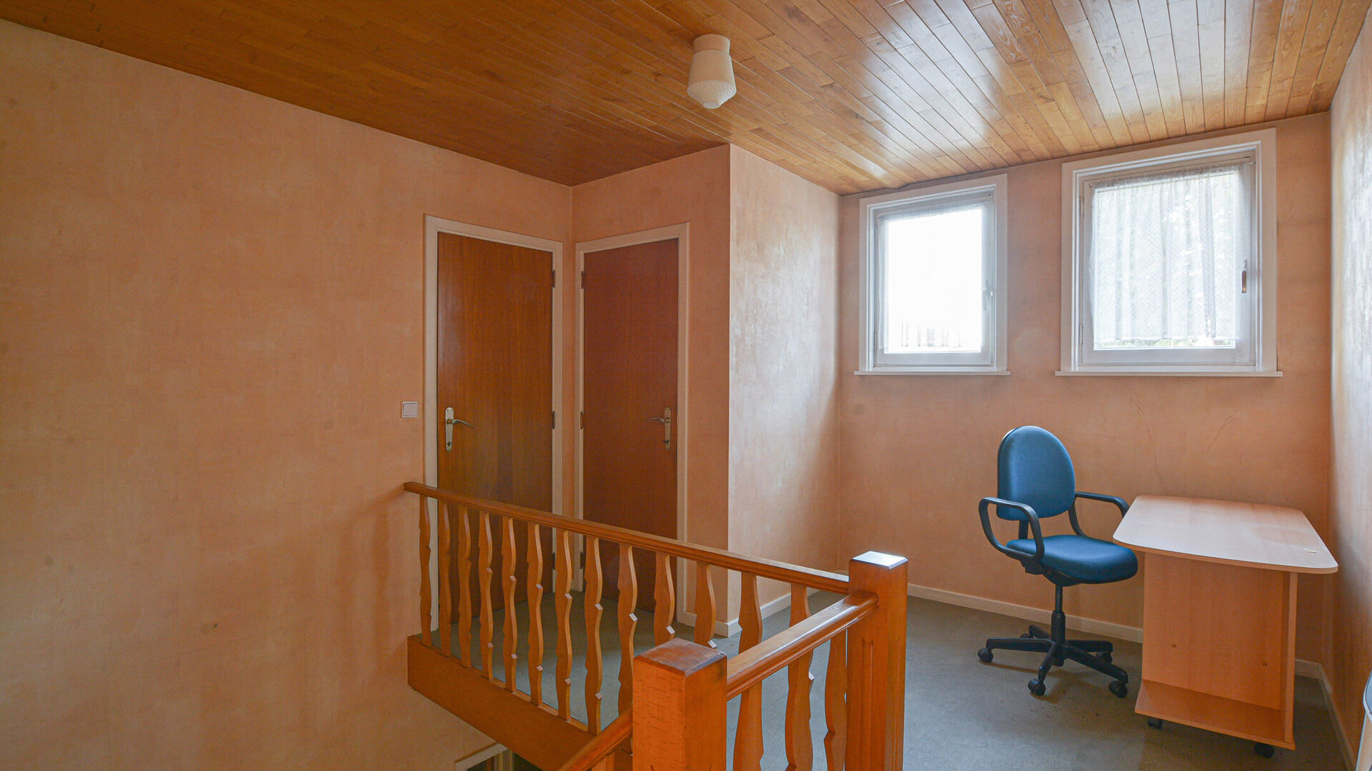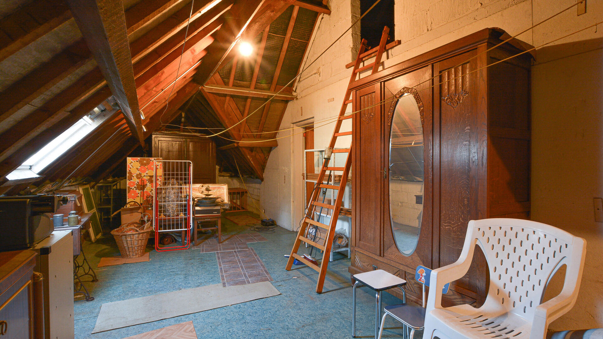 The first floor comprises a landing leading to a master bedroom of approximately 19m² with two spacious storage rooms, a second bedroom of approximately 11m², a separate toilet, and a spacious, convertible attic of approximately 40m² with a mezzanine.