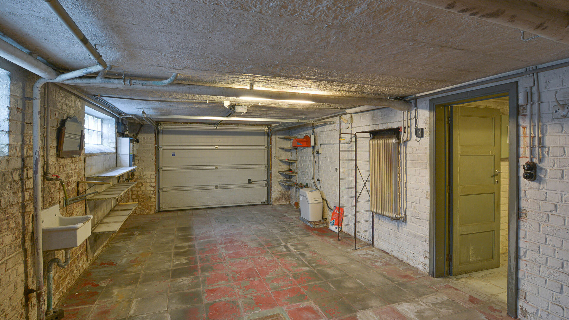 The basement comprises various storage cellars, a boiler room, a spacious two-car garage, and parking in front of the driveway.