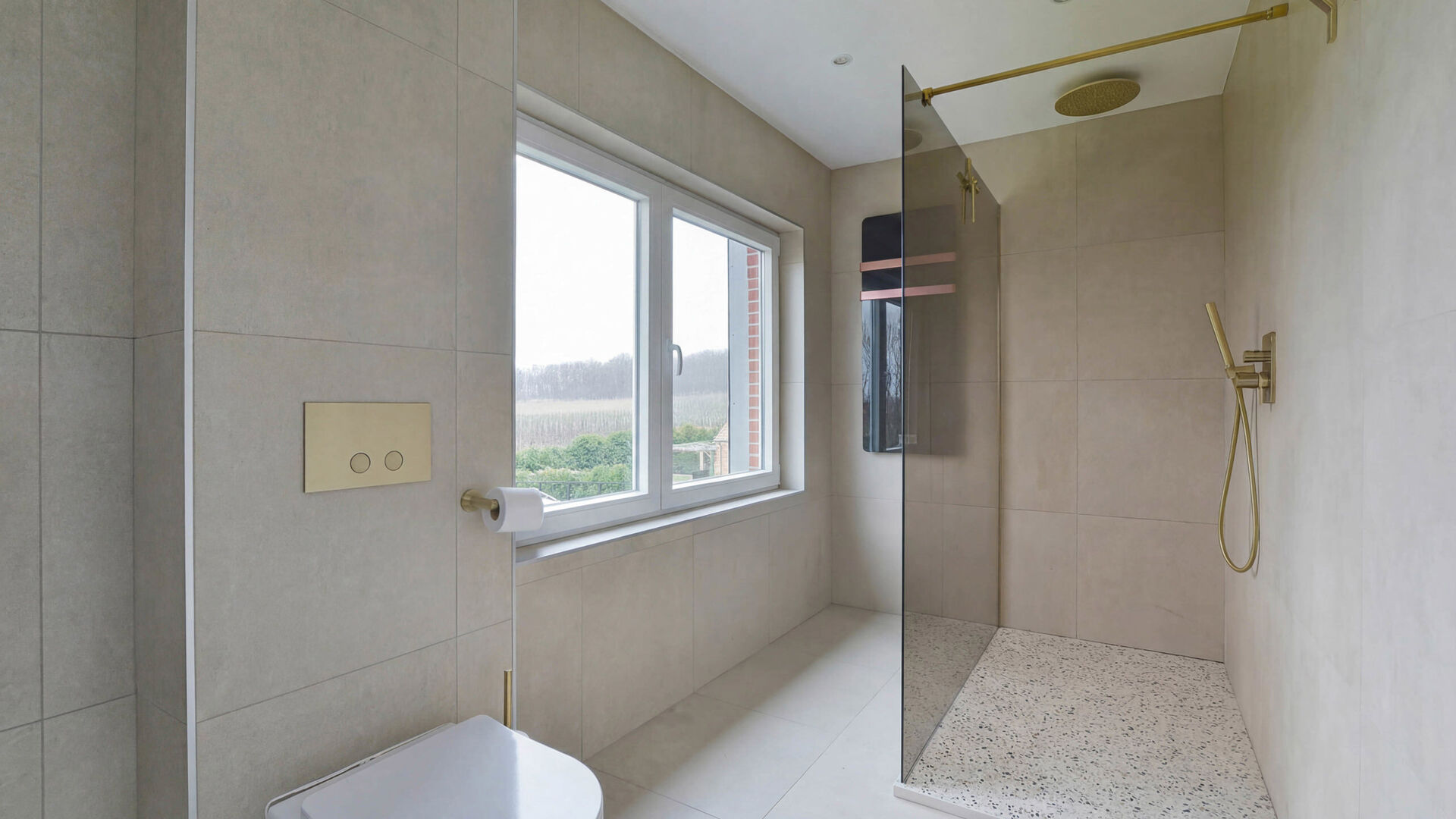 - 1st floor: Night hall, 4 spacious bedrooms (+/-20-18-17-12 m²) , and a bathroom with walk-in shower, toilet, and double sink.