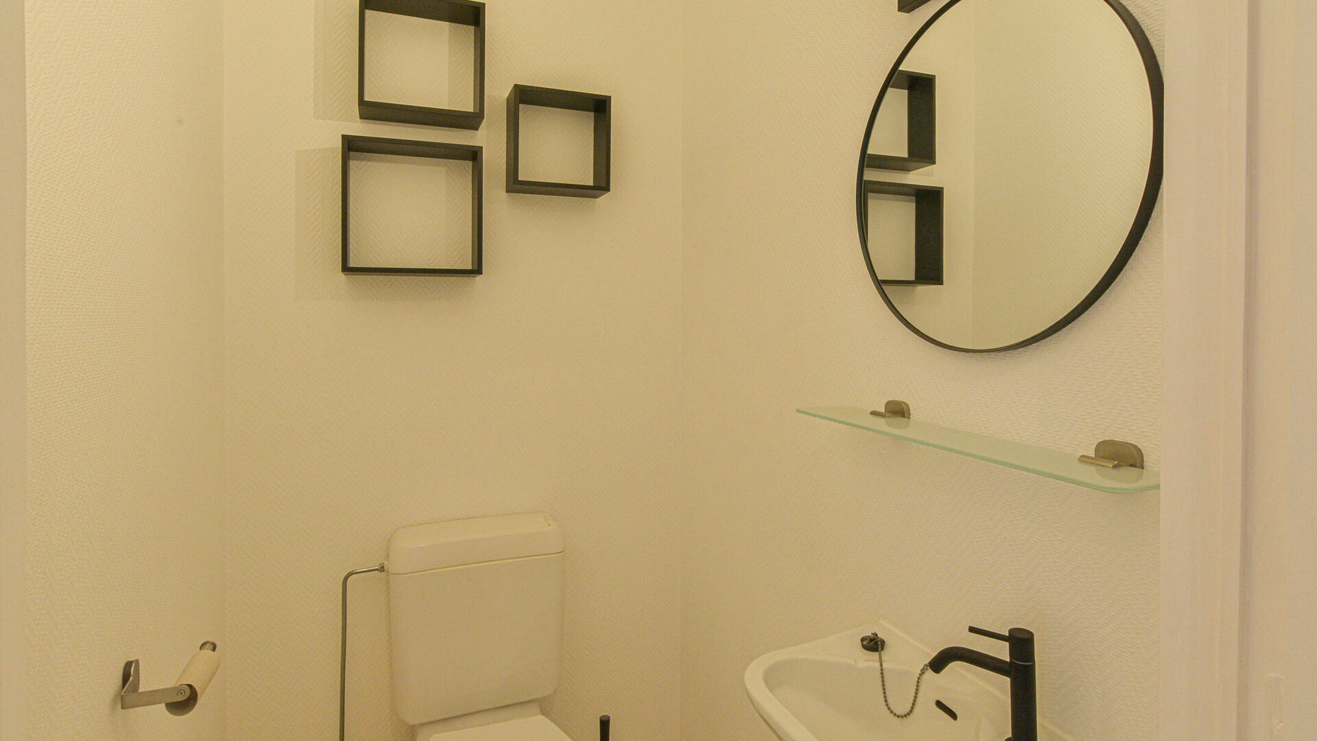 Cet appartement rénové situé au 1e étage avec ascenseur se compose comme suit: