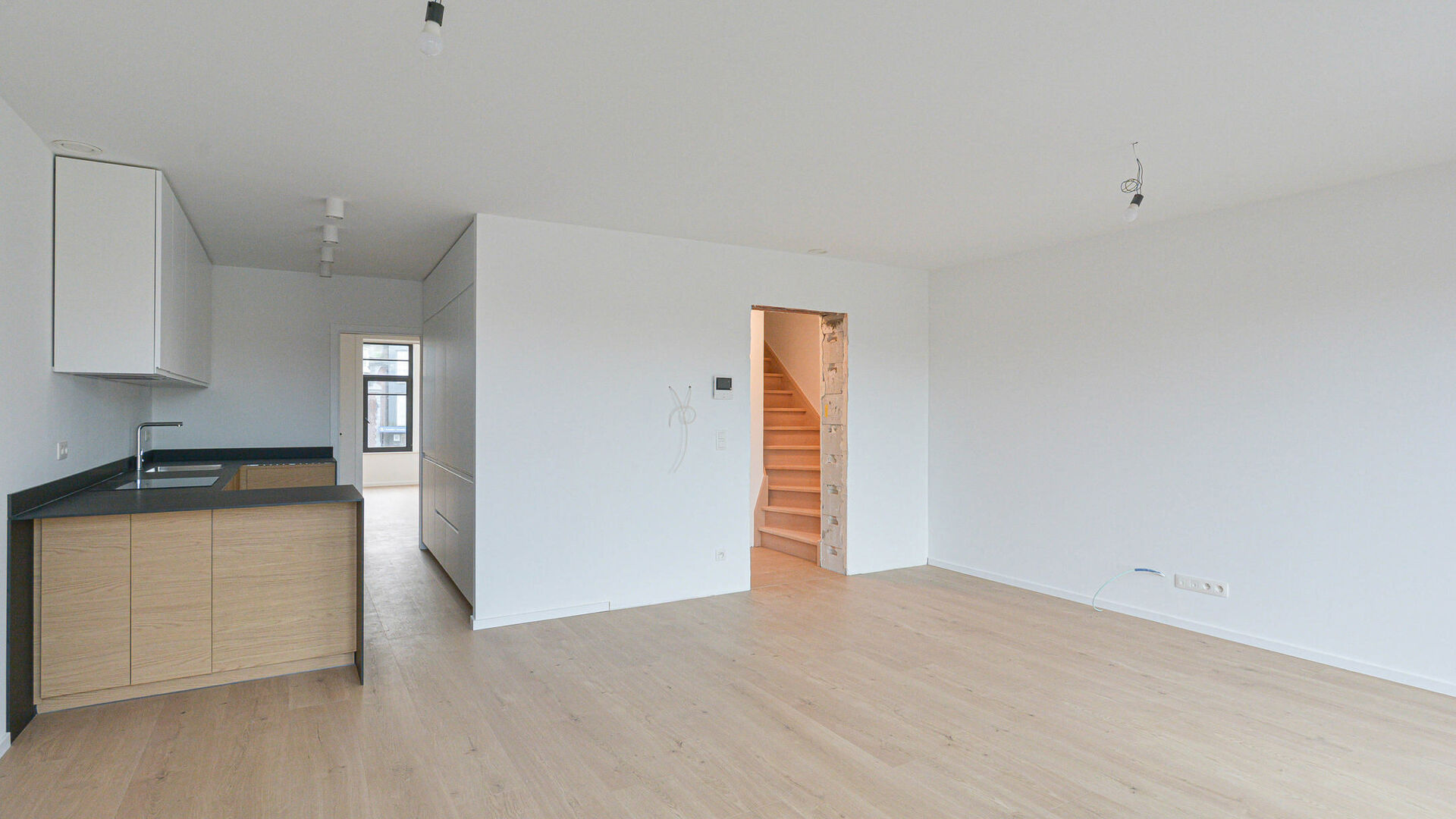 Un lumineux séjour et salle à manger de +/- 32 m² avec accès à une petite terrasse et une cuisine entièrement équipée, un hall de nuit avec WC séparé, deux chambres de +/- 15 m² et +/- 10 m², ainsi qu’une salle de bains équipée d’une douche à l’italienne, d’un lavabo et d’une machine à laver.