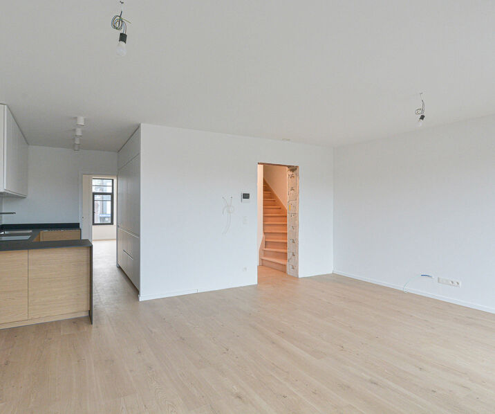 Un lumineux séjour et salle à manger de +/- 32 m² avec accès à une petite terrasse et une cuisine entièrement équipée, un hall de nuit avec WC séparé, deux chambres de +/- 15 m² et +/- 10 m², ainsi qu’une salle de bains équipée d’une douche à l’italienne, d’un lavabo et d’une machine à laver.