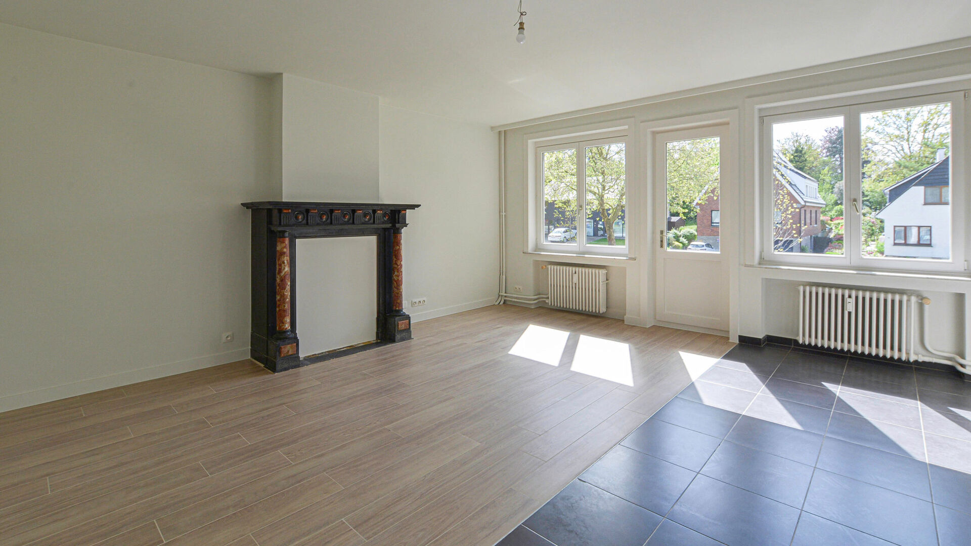 L'appartement +/- 98m² situé au 1e étage sans ascenseur se compose comme suit: