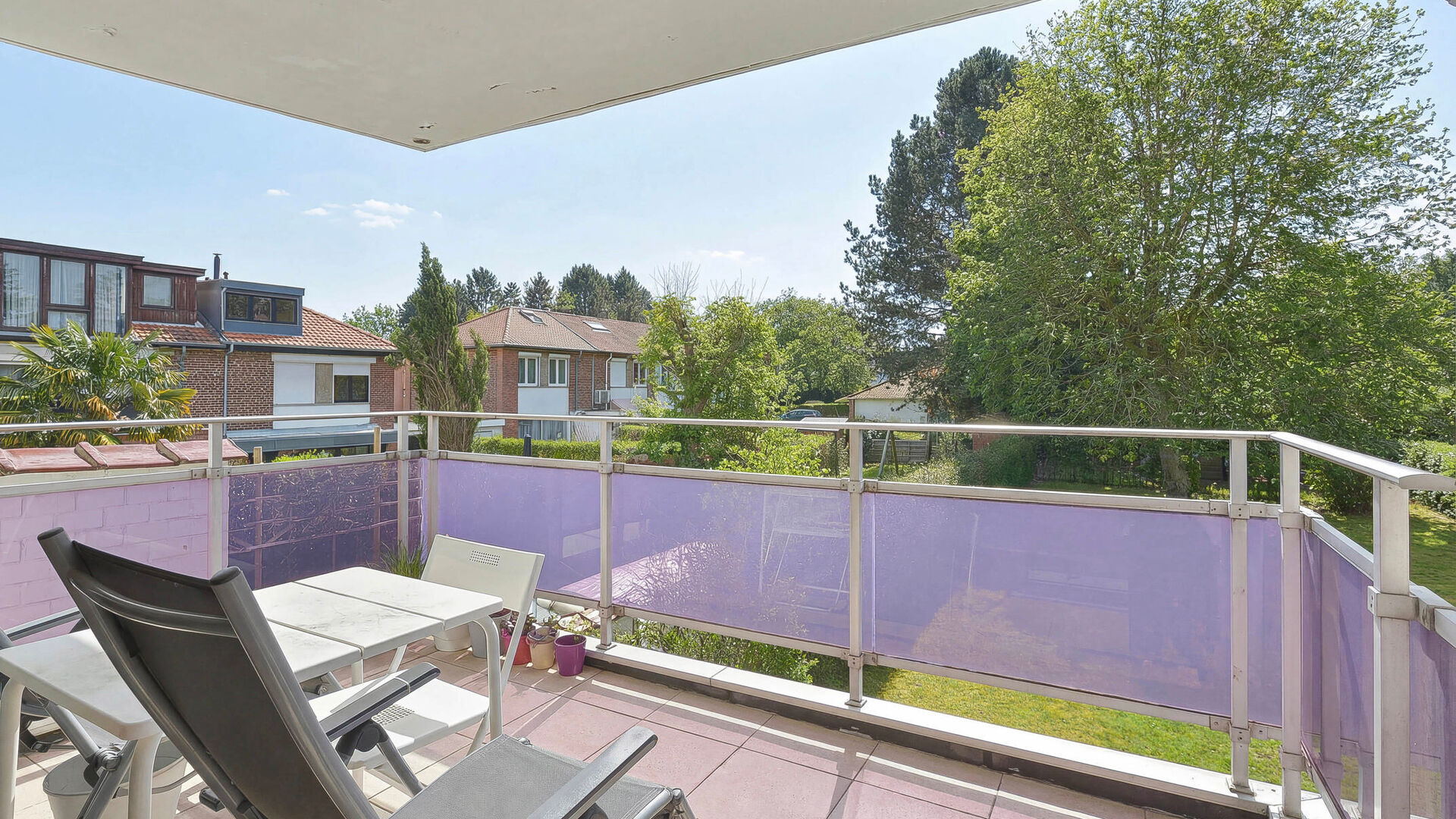 Bel appartement de +/-100m² (selon PEB) situé au 2e étage d’une petite copropriété et se composant de : Hall d’entrée avec espace vestiaire et toilette séparée, lumineux séjour-salle à manger de +/- 30 m² donnant accès à la terrasse orientée SUD avec vue les jardins, cuisine ouverte super équipée avec coin à déjeuner/bar. Hall de nuit avec espace débarras et raccordement pour machine à laver. 3 chambres à coucher de +/- 16 - 10 - 8 m² et salle de bains avec baignoire et double évier.