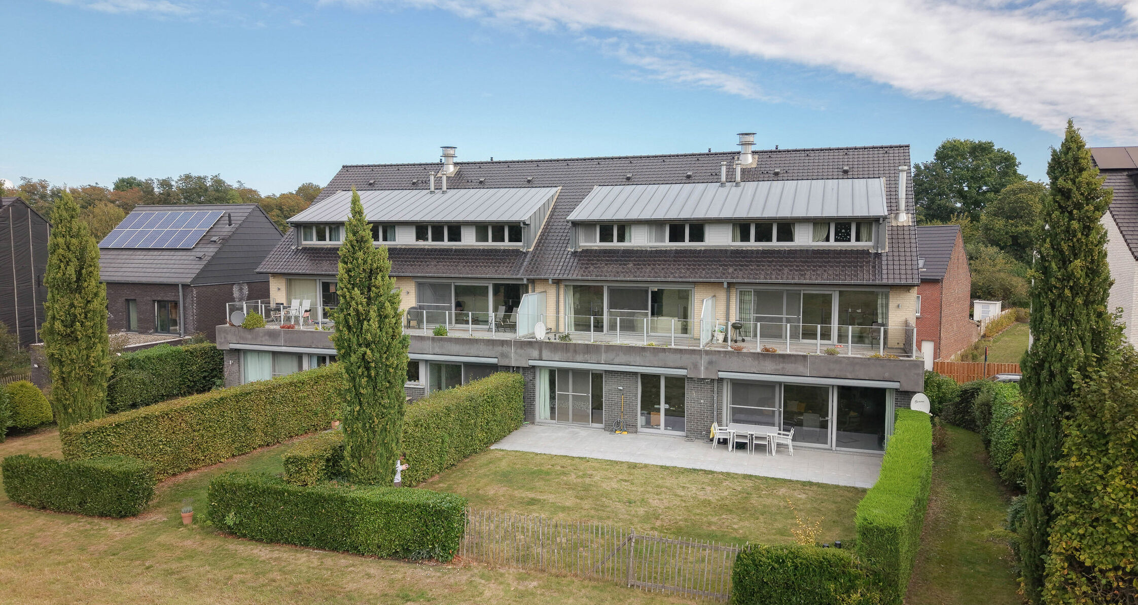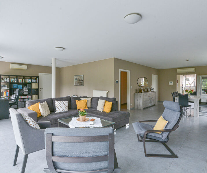 Cet appartement de standing de +/- 200 m², situé au premier étage d’un petit immeuble et combine finition haut de gammes, confort et calme. Il se compose comme suit : Hall d’entrée avec vestiaire et toilette séparée Spacieux et lumineux séjour-salle à manger +/- 65 m², donnant accès à un jardin orienté sud avec terrasse et vue dégagée sur les champs environnants Cuisine entièrement équipée avec coin déjeuner et buanderie attenante Chambre parentale +/- 16 m² avec espace dressing et salle de bain attenante (baignoire, douche, évier et WC) Deux autres chambres de ±12 m² et ±10 m² Deuxième salle d’eau avec douche, évier et WC L’appartement dispose également d’un garage pour deux voitures ainsi que de deux place de parking supplémentaire sur l’allée. Informations complémentaires : double vitrage (aluminium), chauffage individuel au gaz, vidéophone, porte blindée. charges 150 €/mois (entretien des parties communes), disponible pour le 1er décembre 2025.