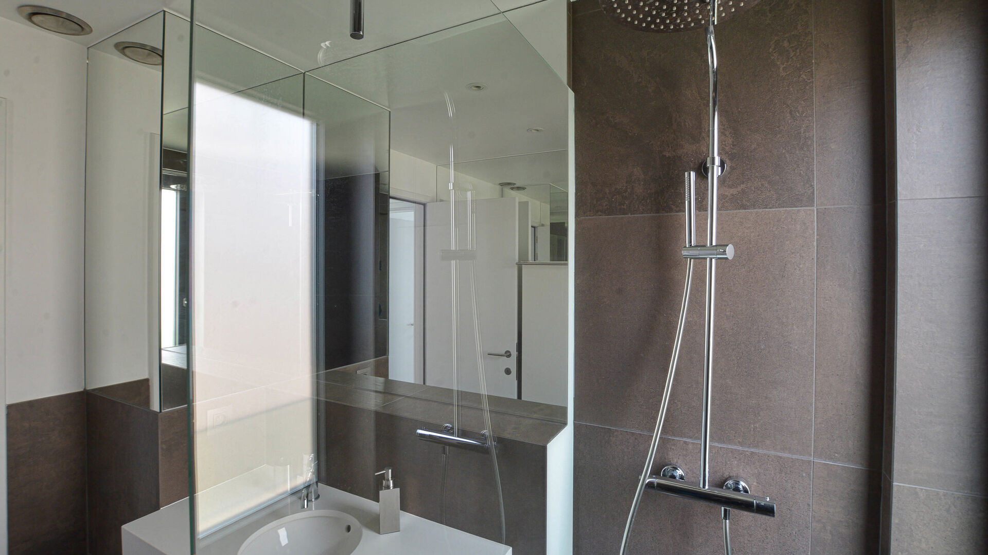 Hall de nuit déservant deux chambres confortables de ±11 m² et ±10 m² et suite parentale de ±14 m² avec salle de bains privative (douche à l’italienne, meuble lavabo, WC), seconde salle de douche avec douche à l’italienne et lavabo.