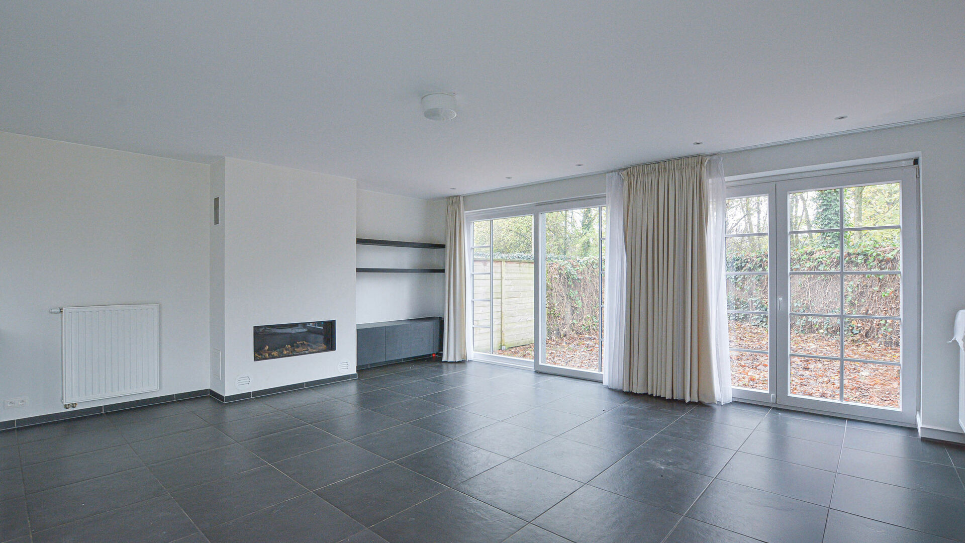 - Rez-de-chaussée : Hall d'entrée avec toilette invités et vestiaire encastré, lumineux séjour – salle à manger de ± 40 m² avec feu ouvert et donnant accès à un jardin avec terrasse et abri de jardin orienté Ouest, superbe cuisine entièrement équipée de +/-10m² avec îlot central, et un garage une voiture ainsi qu’un emplacement extérieur sur l’allée de garage.