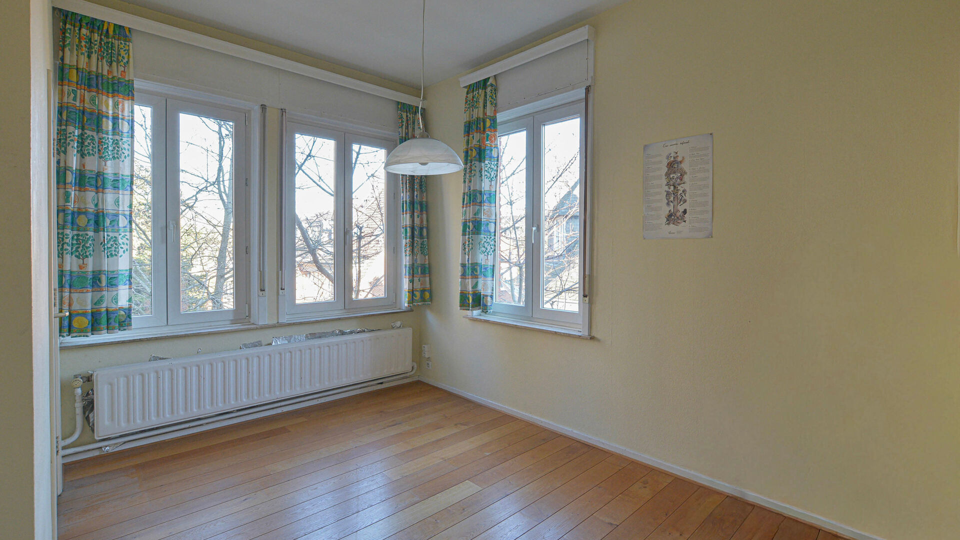 Un hall d’entrée accueillant avec vestiaire et WC séparé, un spacieux séjour, une salle à manger, un bureau d’environ 14 m² et une cuisine à repenser selon vos envies, avec accès direct à la terrasse et au jardin. 1er étage :