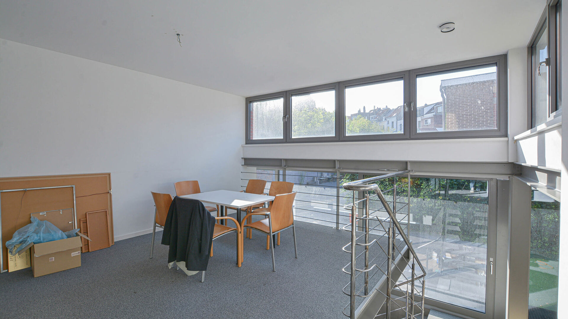 Spacieux espace de bureaux +/- 266m² répartis sur 2 niveaux, idéal pour un bureau d'architecte, comptable, ... Composé au rez-de-chaussée de: hall d'entrée // salle de réunion // espace d'archive +/- 54.8m² // toilettes séparées pour hommes et femmes // acceuil +/- 27m² avec coin bureau +/- 10m² // bureau avant +/- 18m² // archives +/- 17m² // entre-sols: bureau avec placards +/- 30m², donnant accès à la terrasse // 1er étage: spacieux 'open space' +/- 74m² // bureau +/- 18m² // salle de réunion // cuisine avec un coin à manger // cave +/- 5,7m² //