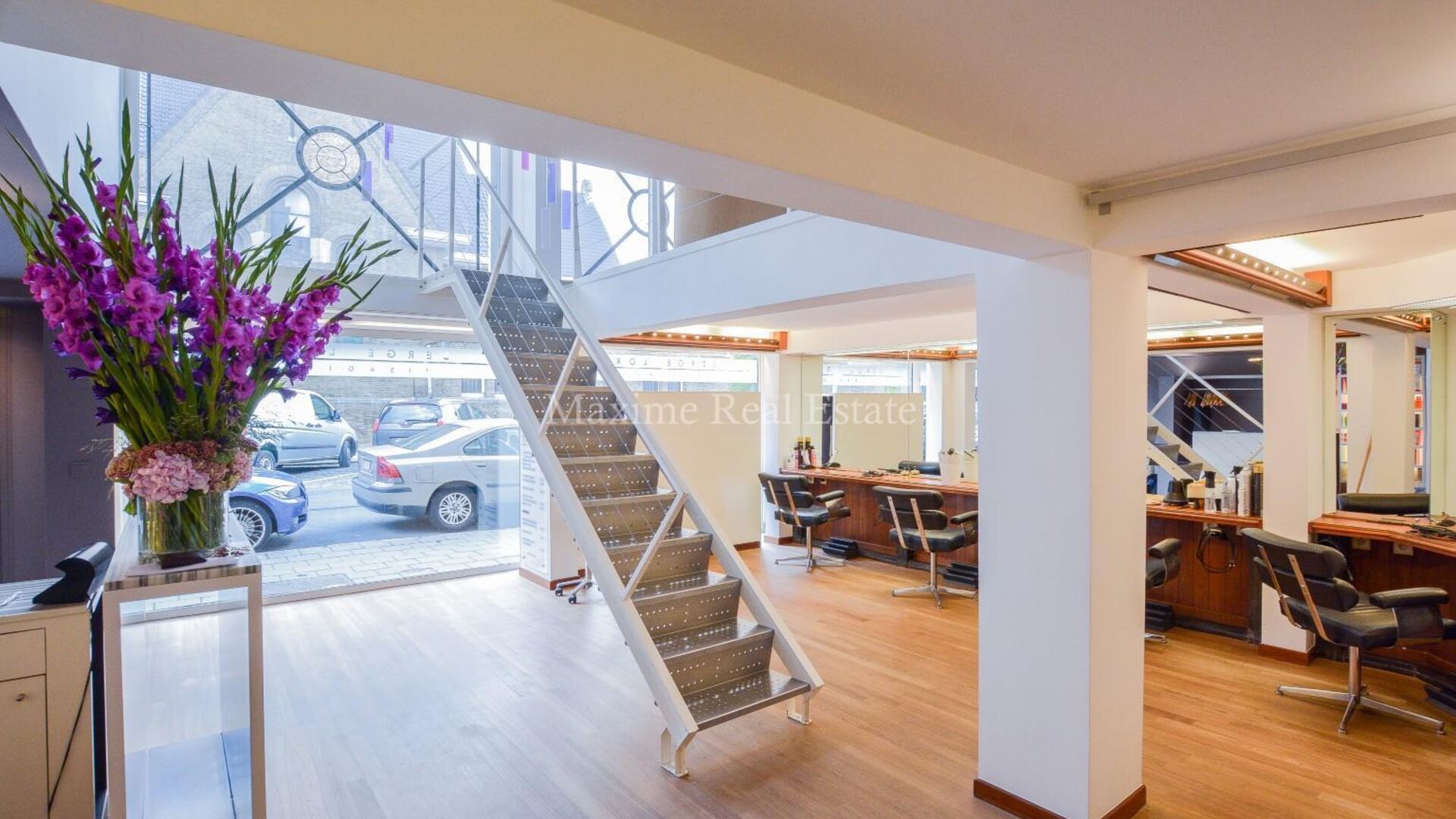Spacieux rez-de-chaussée commercial de +/- 150m² avec une grande vitrine de +/- 8,5m² et comprenant: