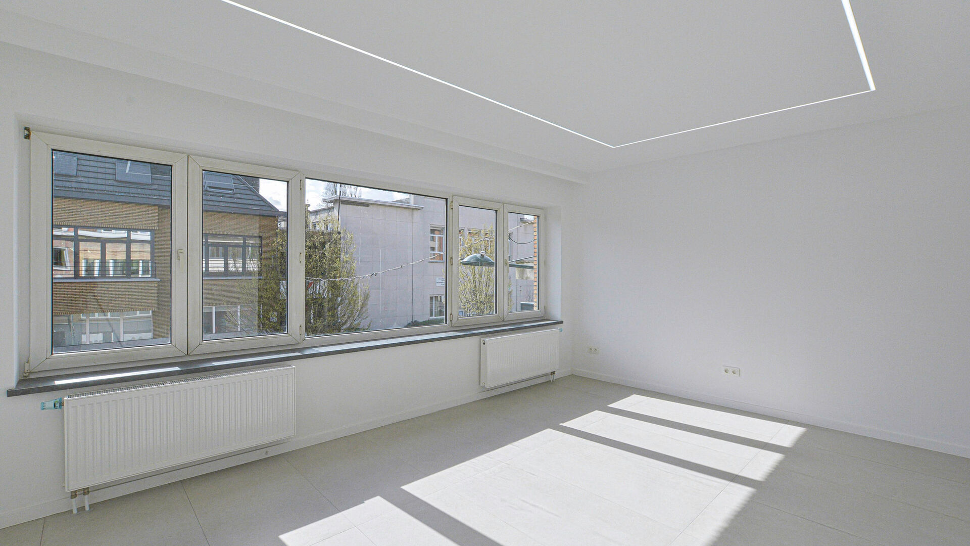 Ce duplex lumineux +/- 113m², pour première occupation après rénovation est situé au deuxième étage (sans ascenseur) et se compose comme suit: