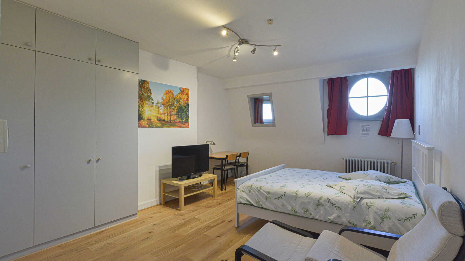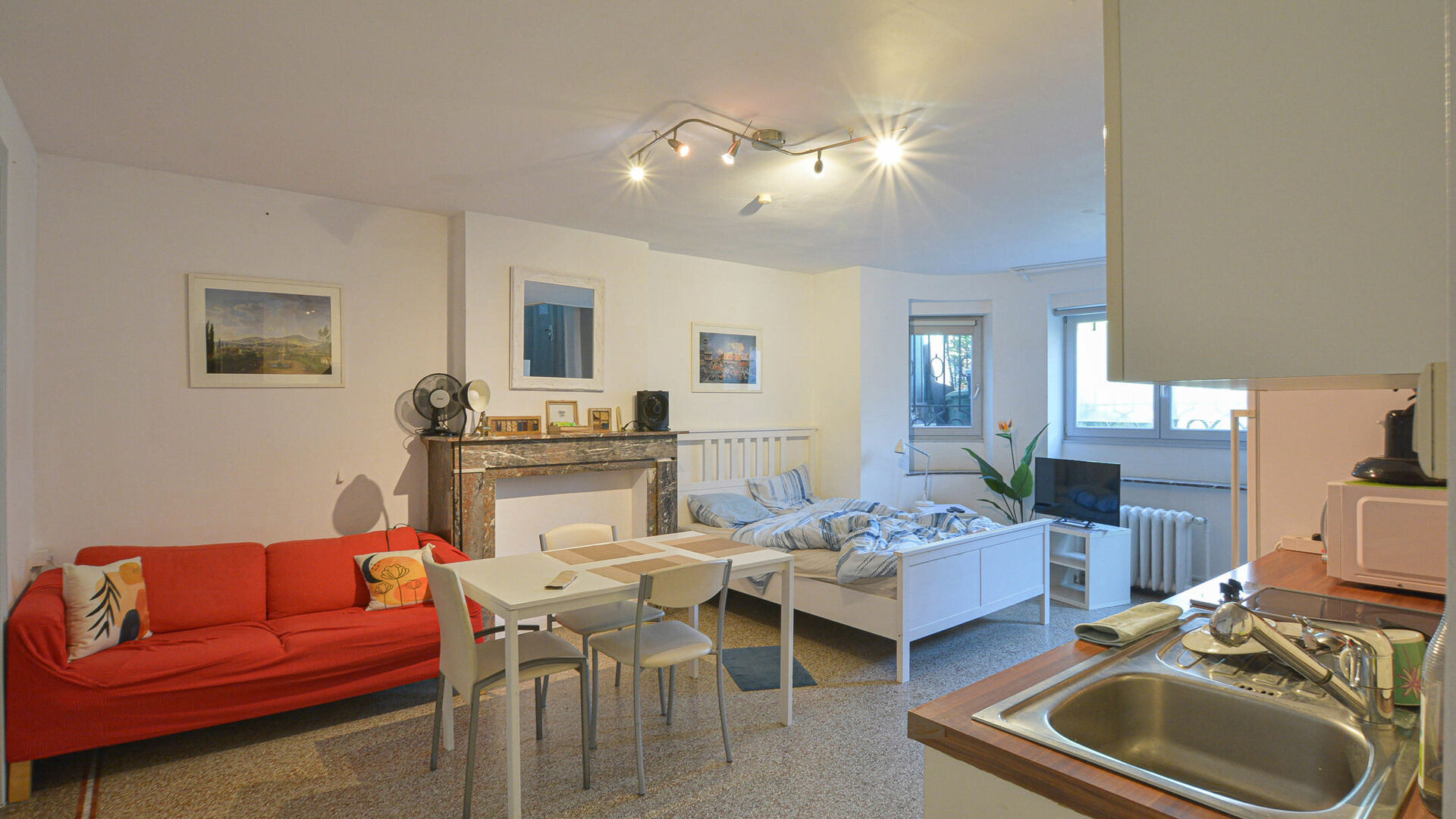 - Studio avec cuisine, salle de douche avec WC et espace de rangement.
