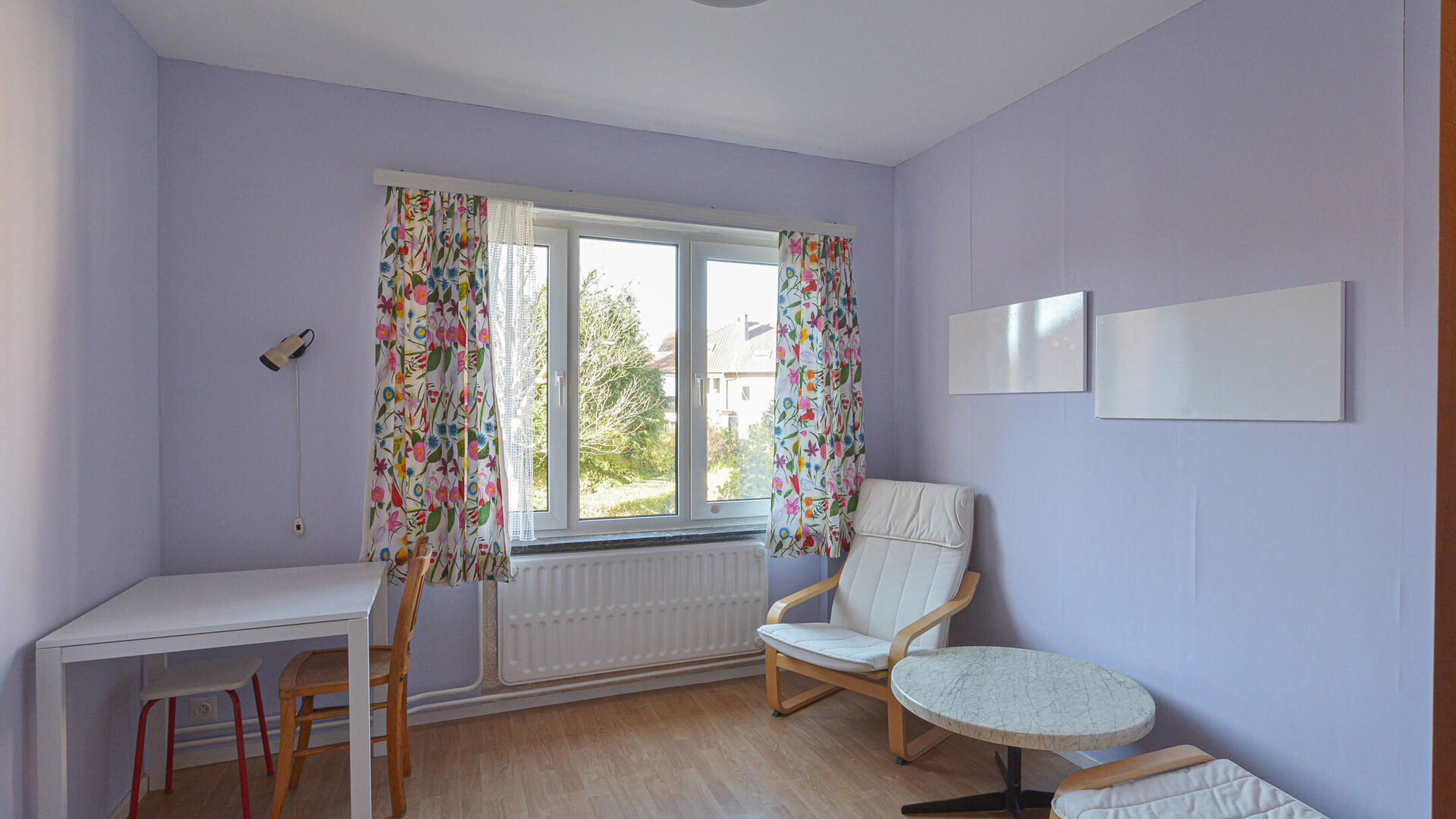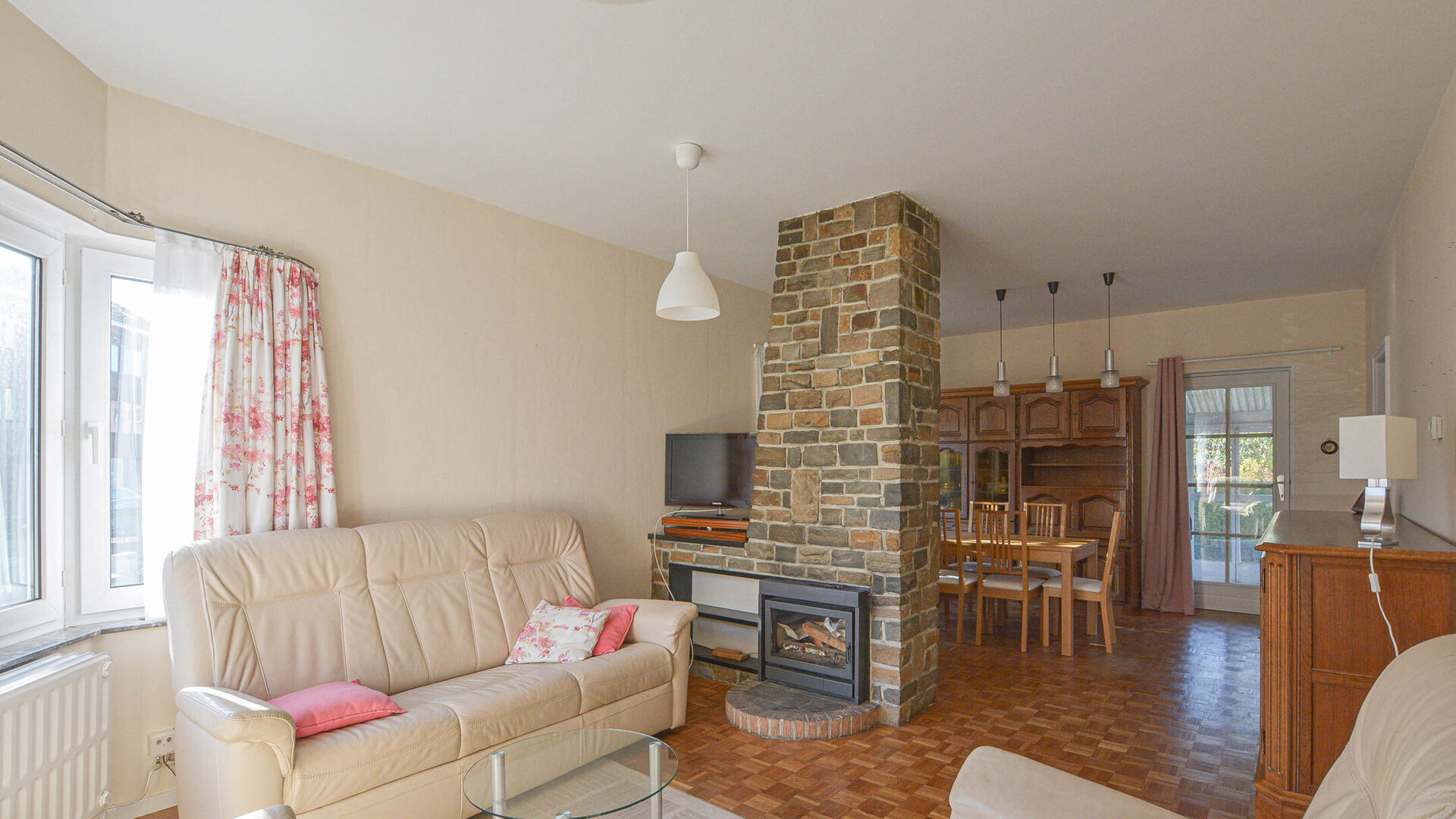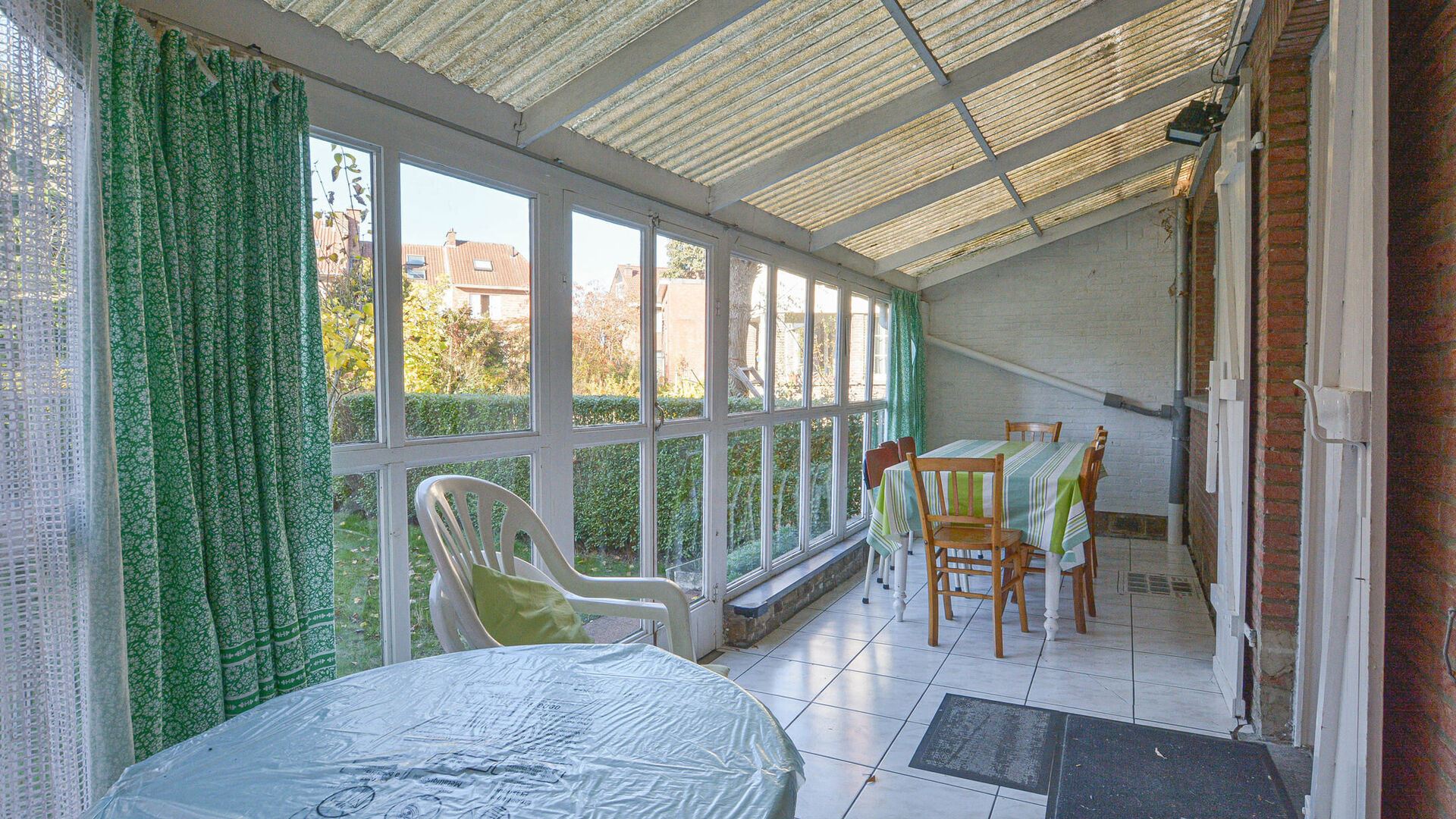 - Rez-de-chaussée: Hall d'entrée avec toilette d'invités, lumineux séjour-salle à manger de +/-30m², veranda donnant accès au jardin avec terrasse, cuisine spacieuse entièrement équipée.
