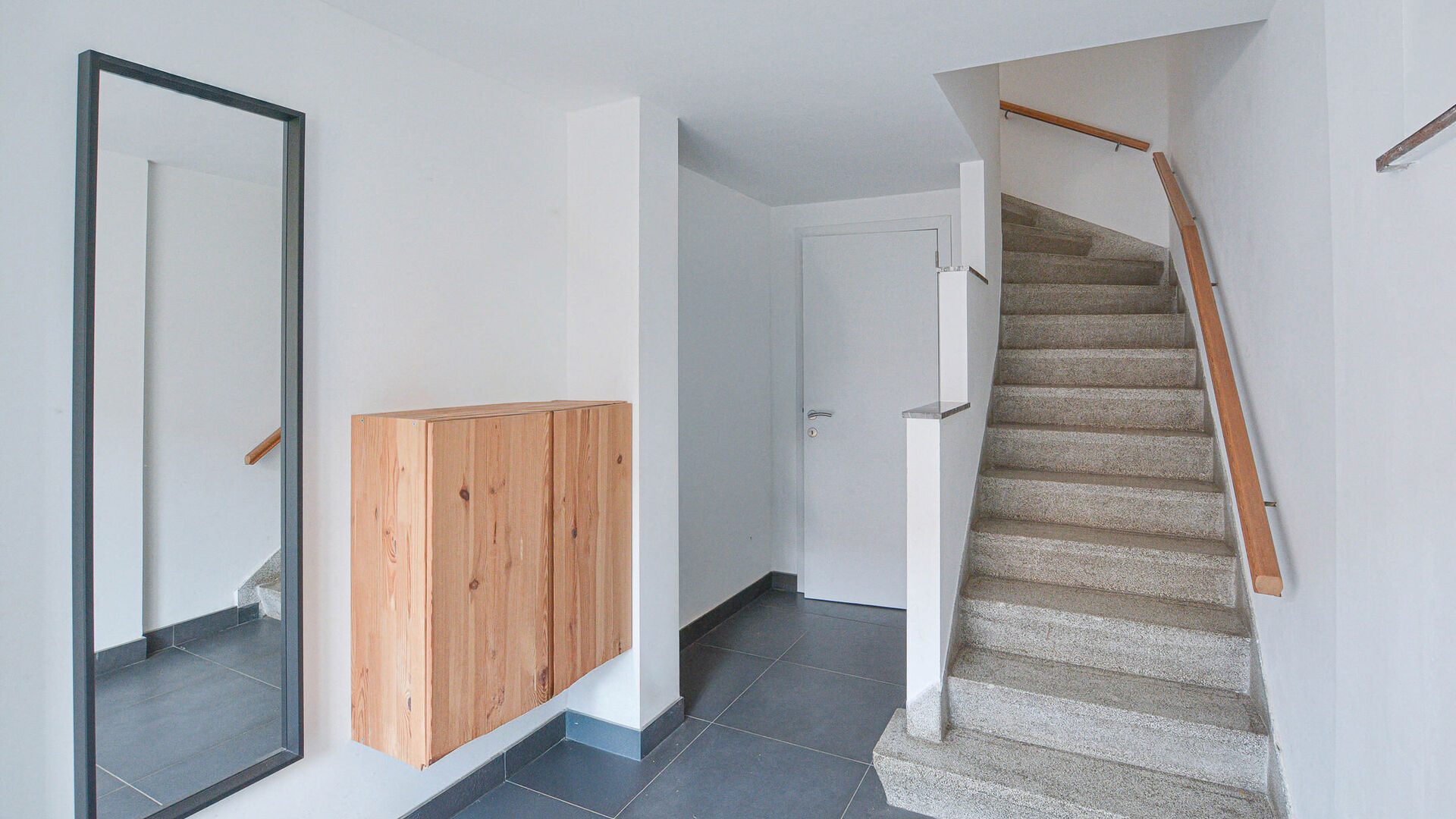 Le rez-de-chaussée se compose d’un hall d’entrée avec vestiaire, d’un WC séparé, d’une buanderie ainsi que d’un grand garage équipé d’une porte automatique.