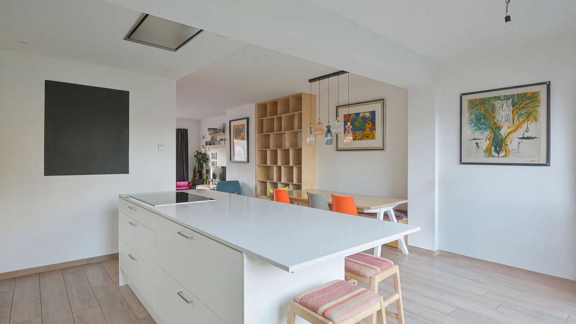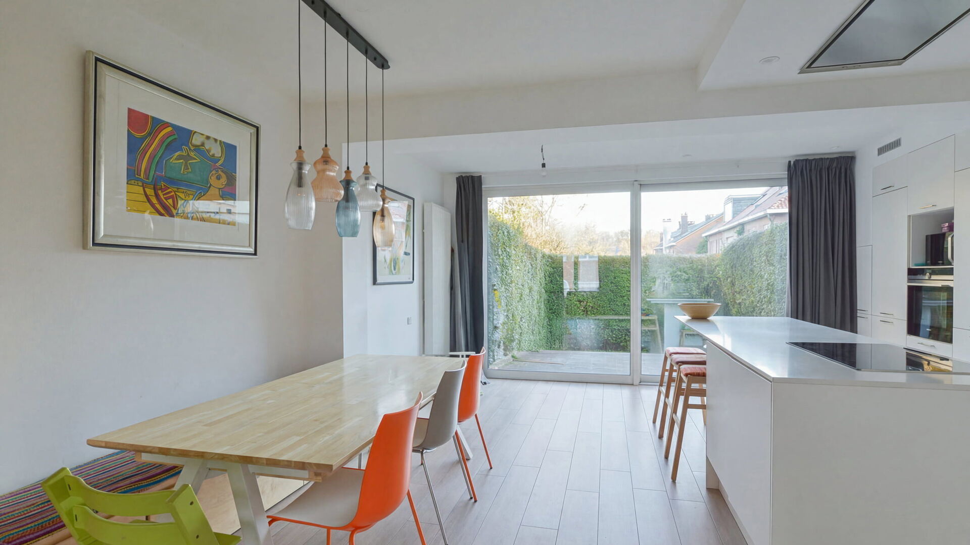 Au premier étage, vous découvrirez un agréable palier menant vers un spacieux séjour et une salle à manger d’environ 40 m². La cuisine ouverte, entièrement super équipée et dotée d’un coin déjeuner, s’ouvre sur une large baie vitrée donnant accès à la terrasse et au jardin, offrant ainsi une belle luminosité et une agréable connexion avec l’extérieur.