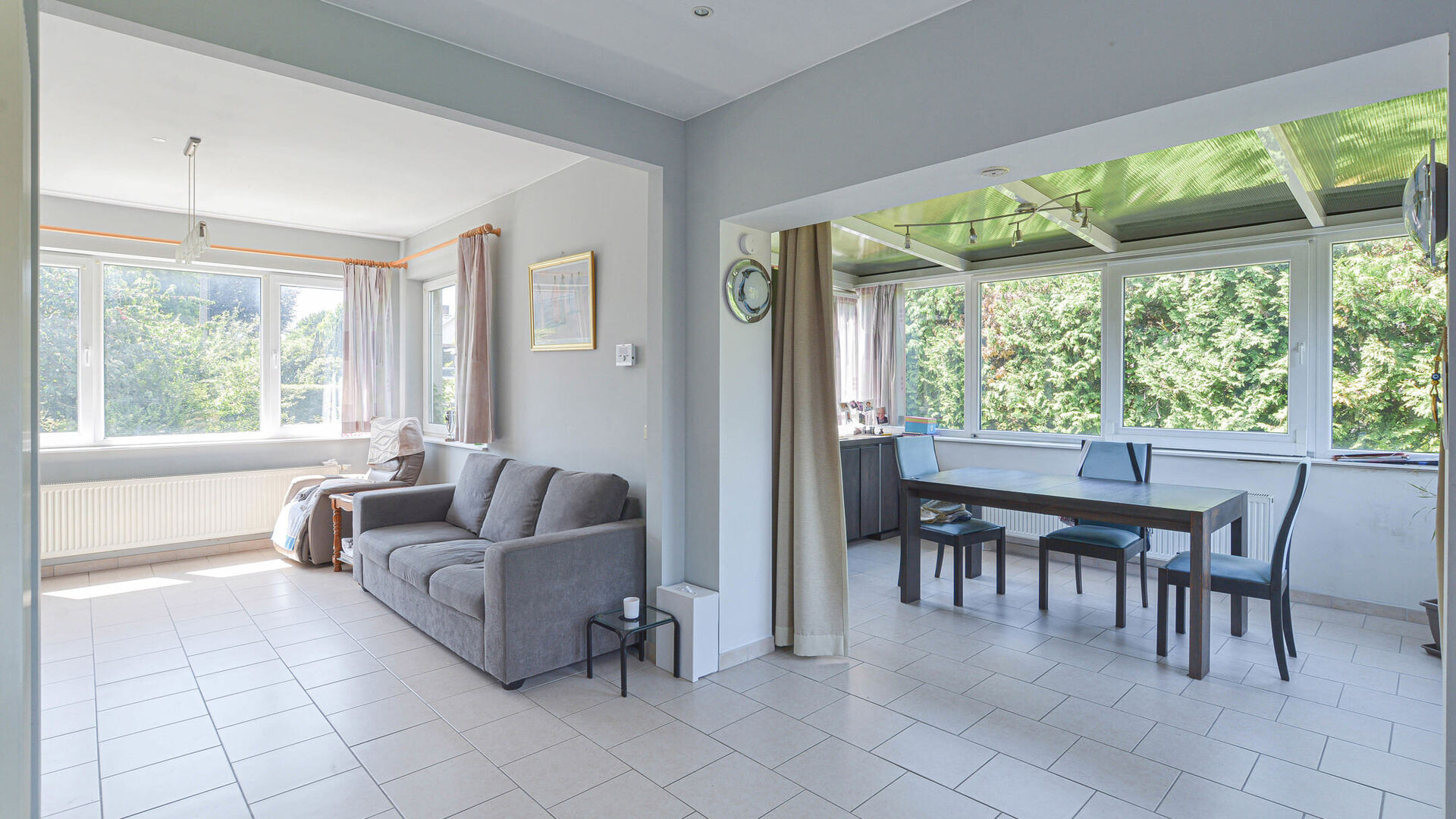 Le rez-de-chaussée offre un hall d’entrée avec toilette invités et espace vestiaire, un lumineux séjour-salle à manger de +/-35 m² donnant sur une agréable terrasse, un jardin privatif et une spacieuse cuisine ouverte entièrement équipée avec coin petit-déjeuner.