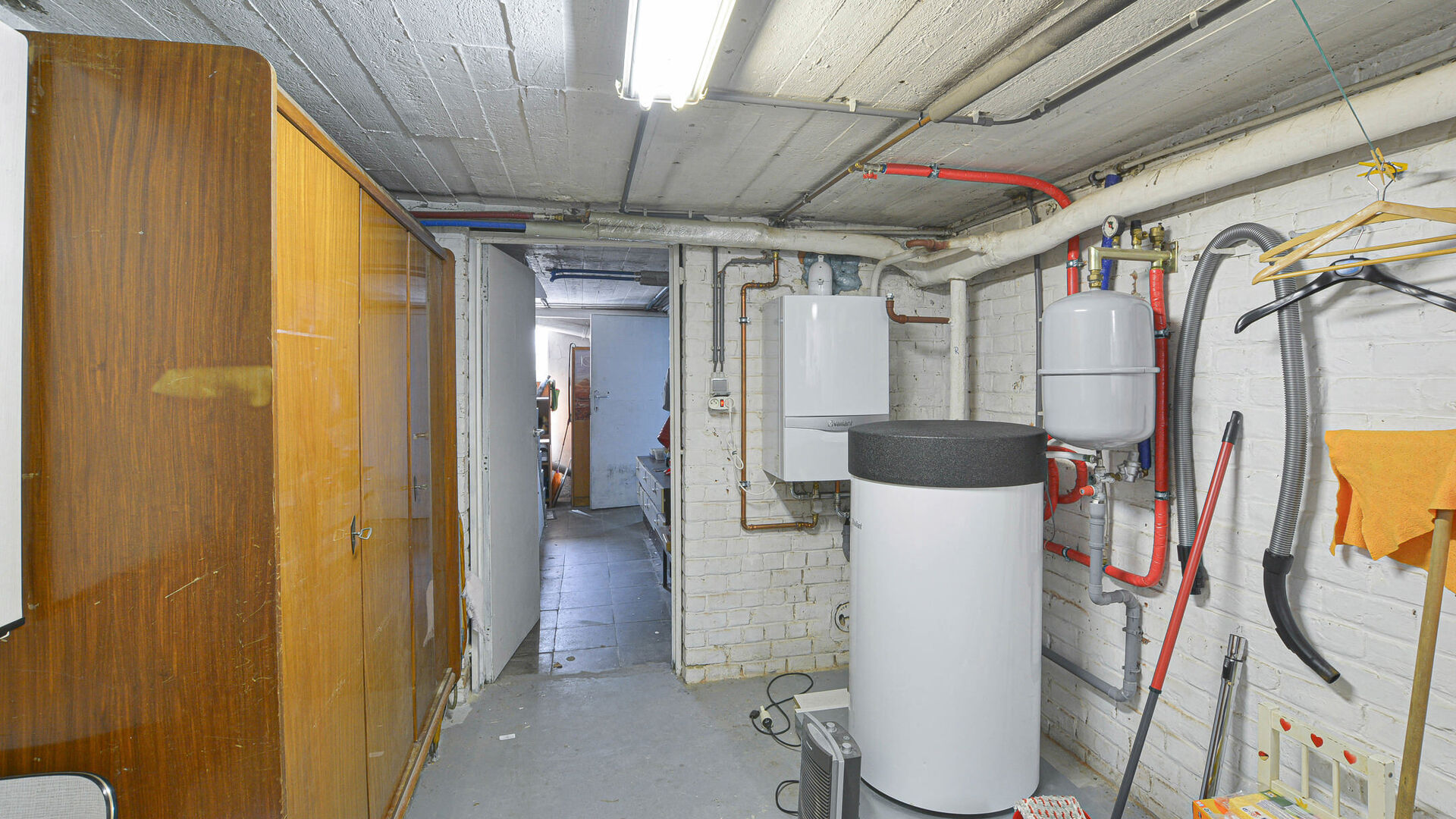 À l’étage, un hall de nuit dessert trois belles chambres(+/- 14, 11 et 8 m et une salle de bains avec une petite baignoire/douche, évier et toilette.
