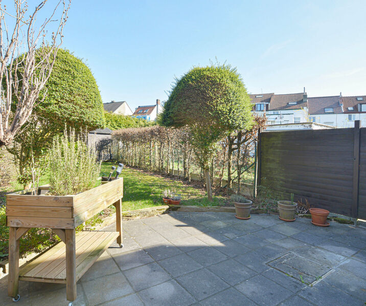 - Rez-de-chaussée : Hall d’entrée avec toilette séparée, lumineux séjour et salle à manger de+/-30m², cuisine équipée donnant accès à une agréable terrasse et beau jardin avec abri de jardin.