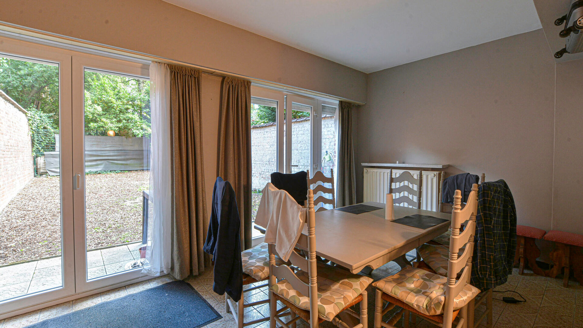 Grand séjour offrant accès au jardin avec espace couchage et espace salle à manger +/- 39m² // jardin privatif // WC séparé // cuisine équipée (taques au gaz, four, micro-ondes, lave-vaisselle, sèche linge, frigo/congelateur) // salle de douche (douche, évier, machine à laver).