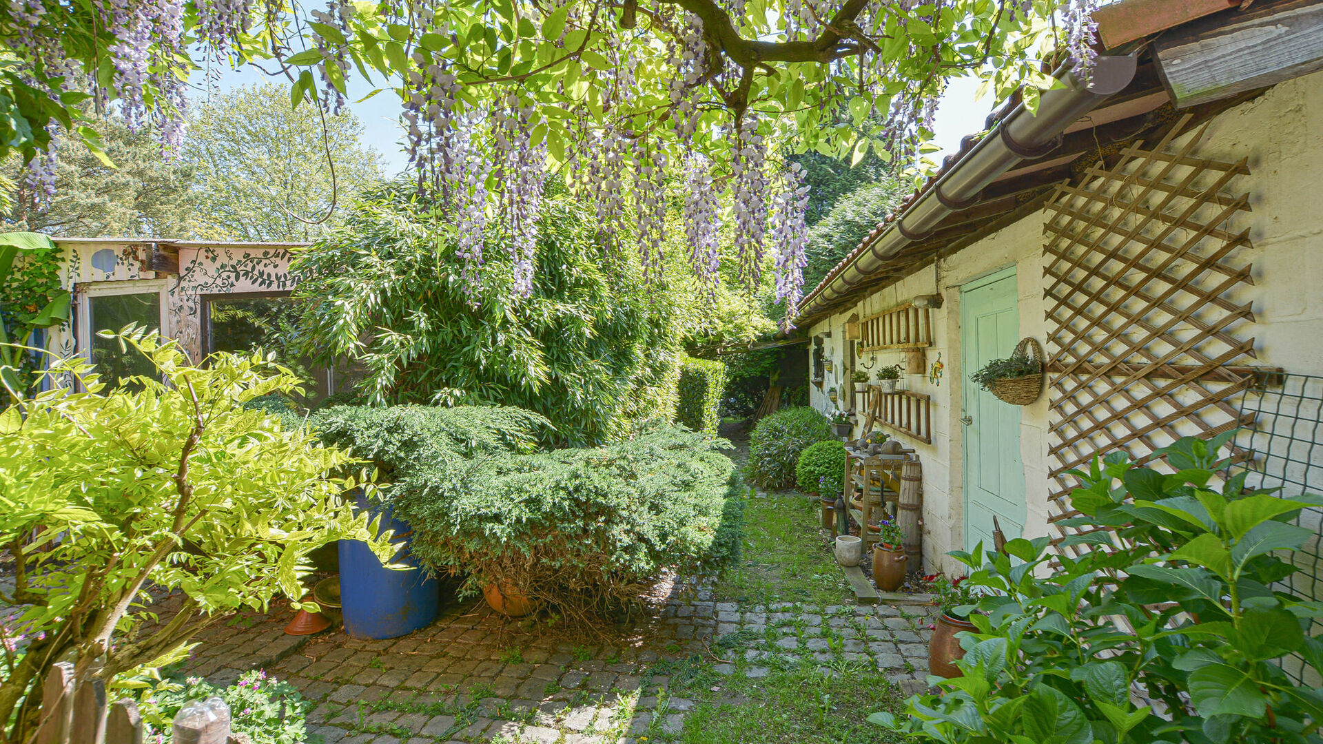 La propriété offre également un magnifique jardin privatif à l’abri des regards, une cour intérieure/terrasse ainsi qu'une remise de rangement/atelier et un garage.