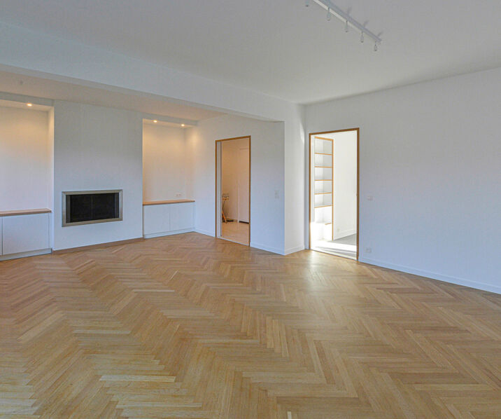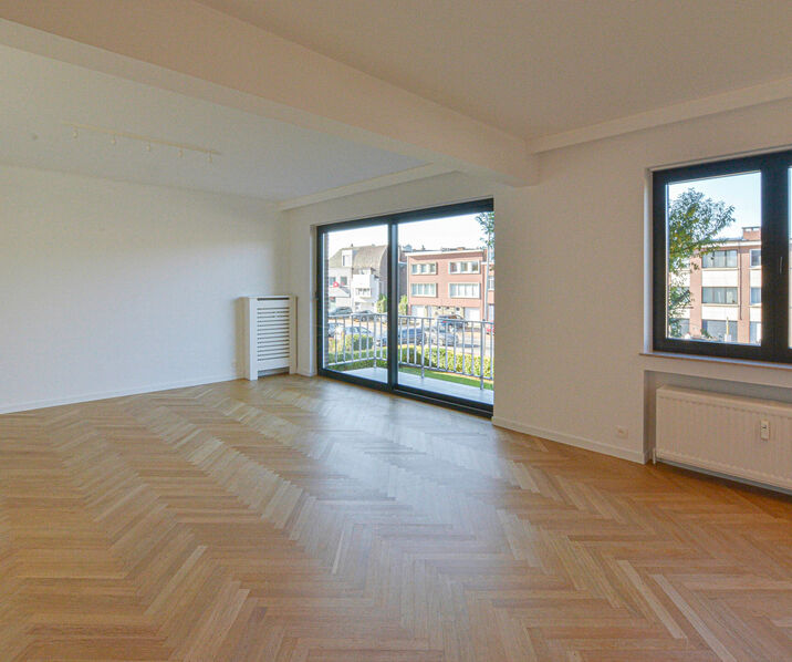 Inkomhal met apart toilet en vestiaire // lichtrijke woonkamer +/- 31,6 m² met toegang tot een eerste terras // ingerichte keuken (elektrische kookplaten, oven, vaatwasser, koelkast en diepvriezer) met toegang tot een tweede terras // nachthal met ingebouwde kast // eerste slaapkamer +/- 13,4 m² // tweede slaapkamer +/-11 m² met wastafel // derde slaapkamer/bureau +/-. 9 m² met toegang tot een balkon // badkamer met ligbad, wastafel en wasruimte (momenteel in renovatie) // kelder //