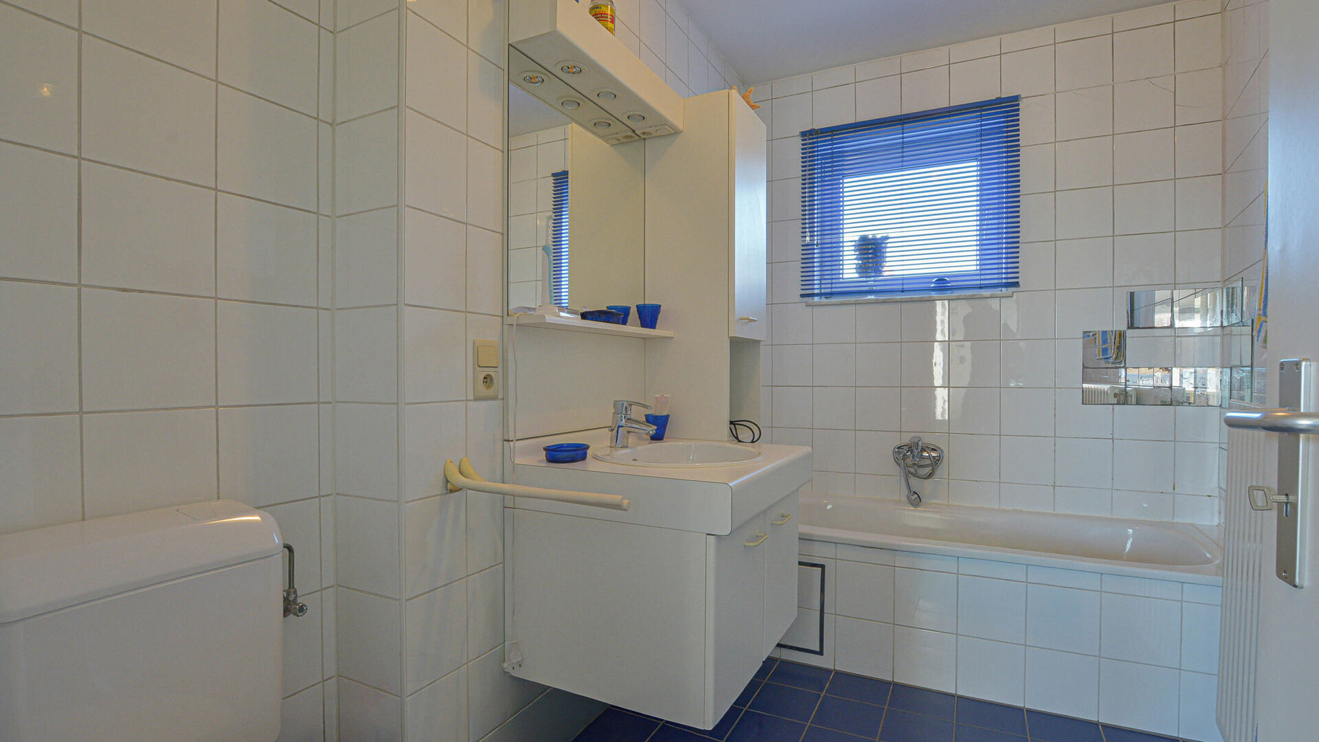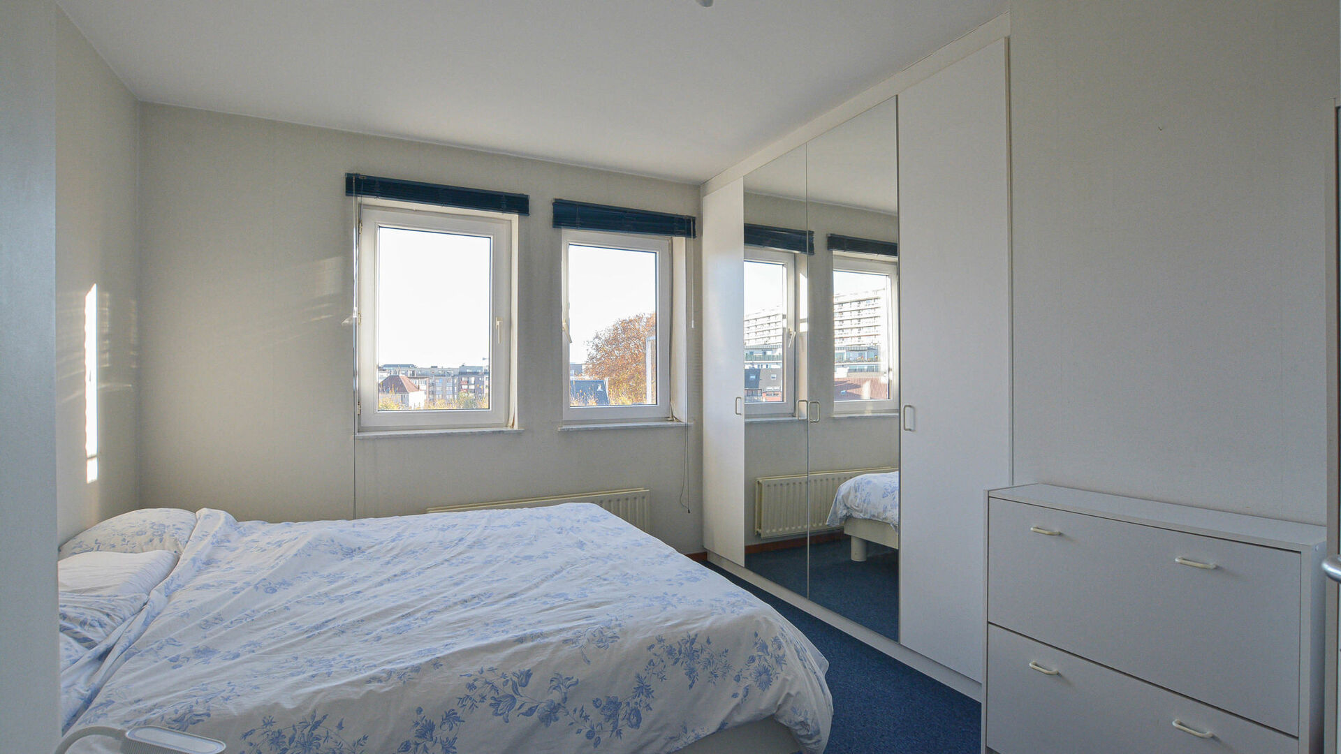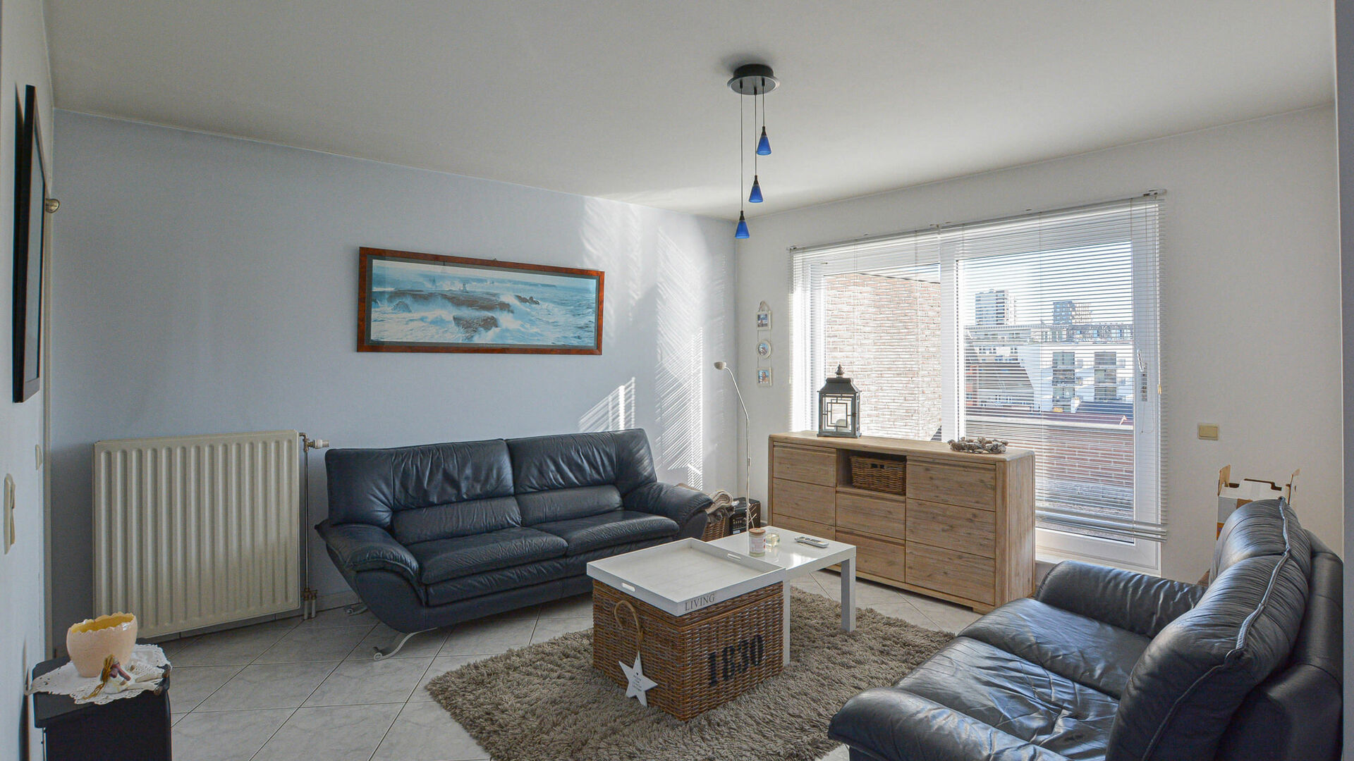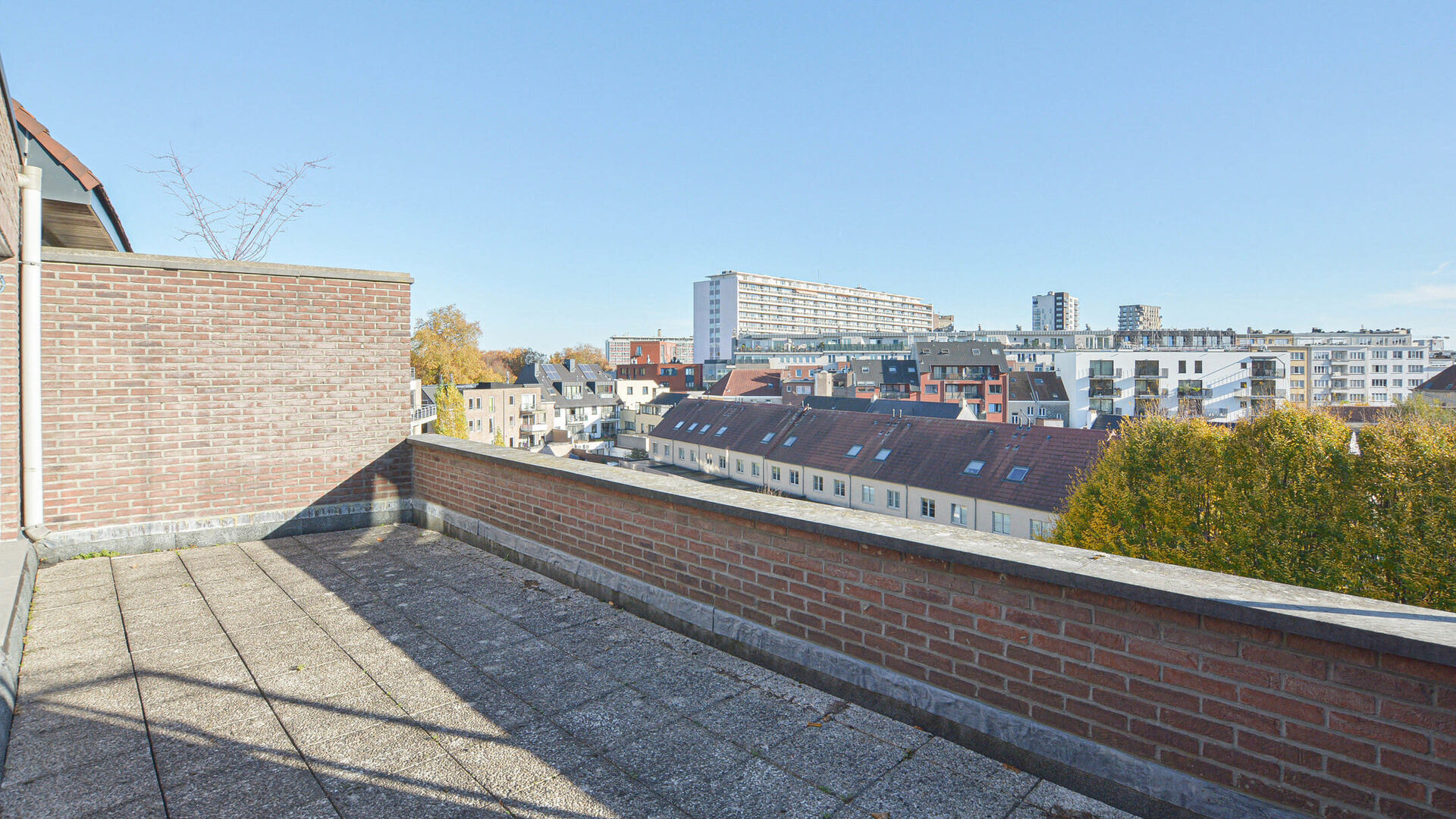 Inkom met ingebouwde kasten, lichtrijke woon-eetkamer van +/-35m² met volledig uitgeruste open keuken en toegang gevend tot twee ruime terrassen. Slaapkamer van +/-10m² met ingebouwde kast, badkamer met ligbad, toilet en wastafel.