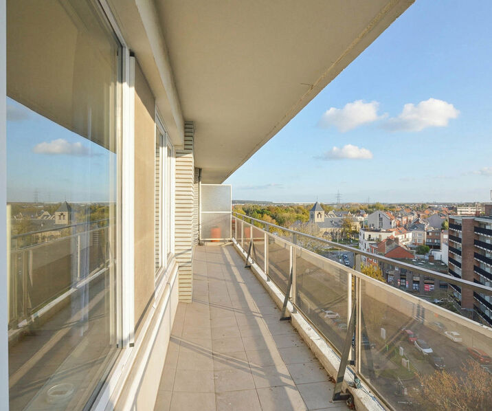 Dit appartement van +/- 88m² (volgens het EPC) bevindt zich op de 9e verdieping en is als volgt ingedeeld: