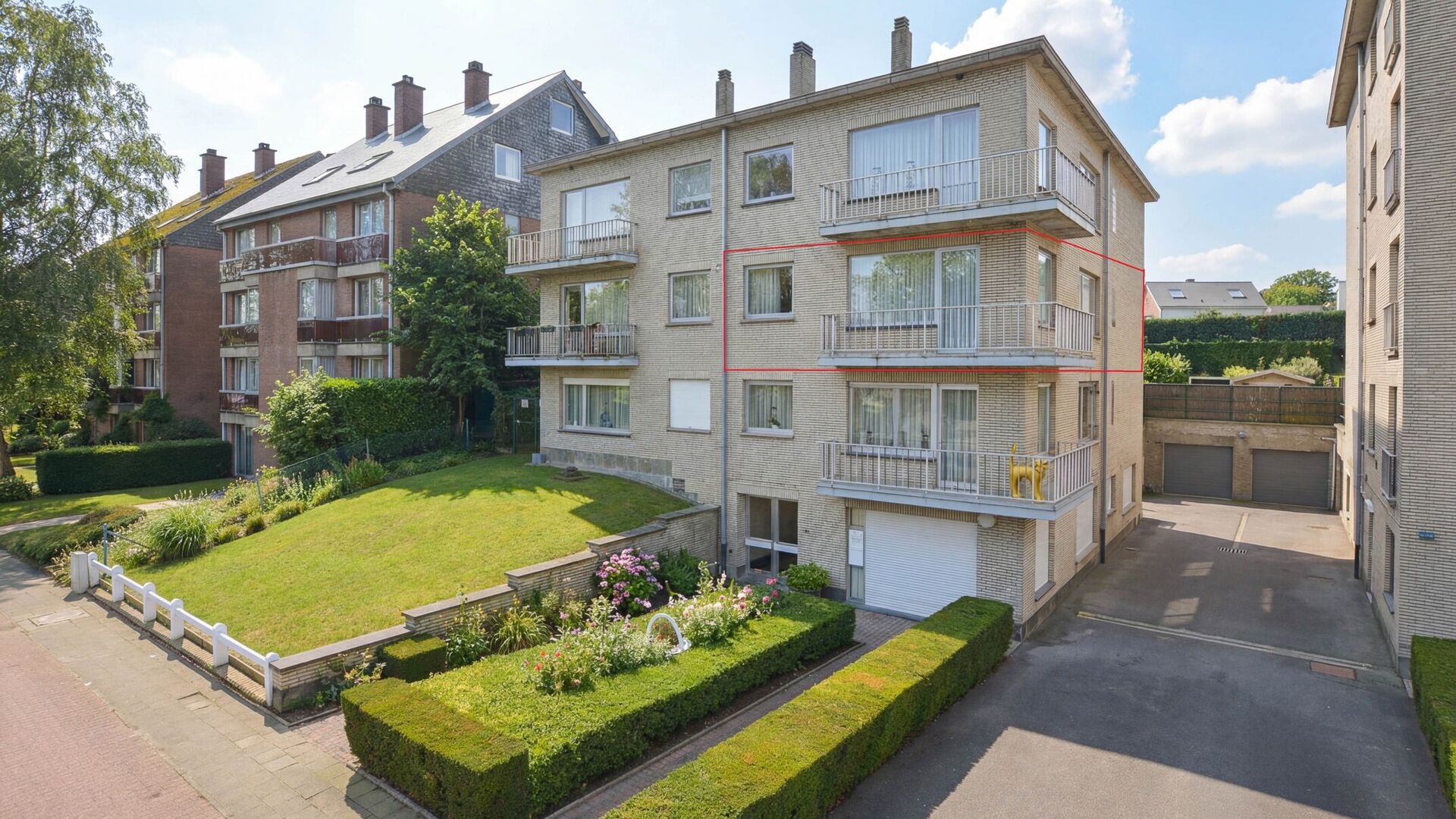 Een kelder en garage + 30.000€ worden samen met het appartement verkocht.