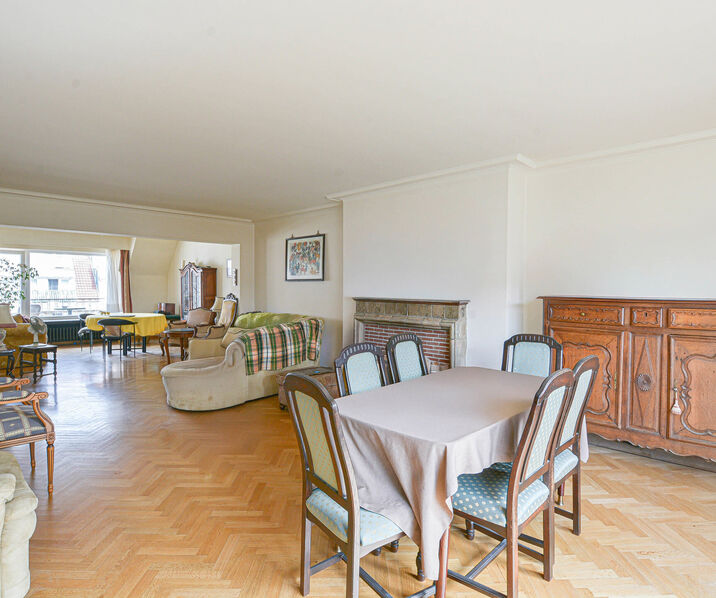 Dit karaktervol, ruim appartement van +/- 125m² (volgens EPC) is gelegen op de 5e verdieping en is als volgt samengesteld: