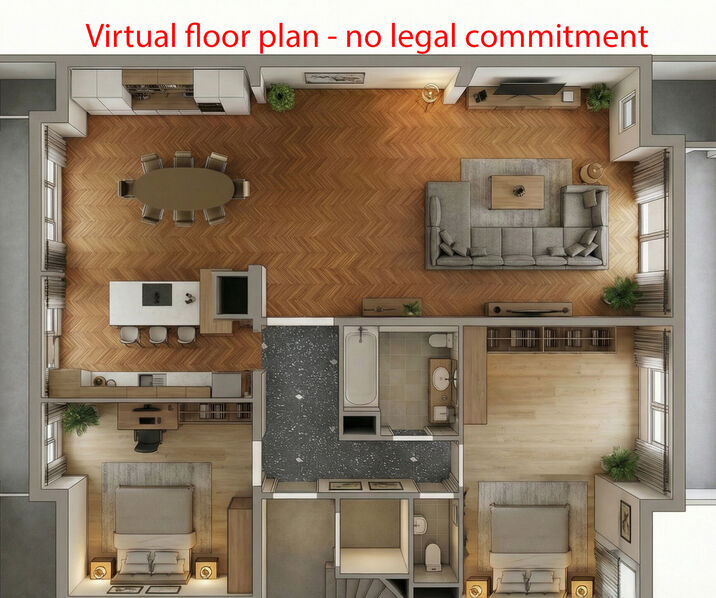 De meegedeelde informatie en oppervlaktes zijn louter indicatief en houden geen enkele juridische verbintenis in.