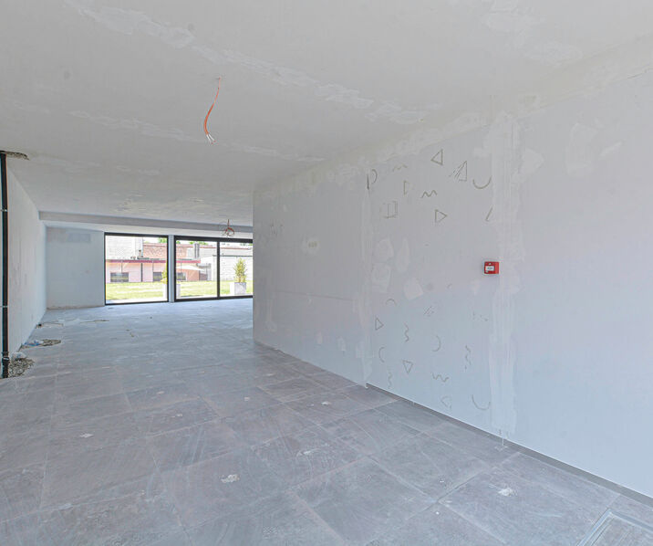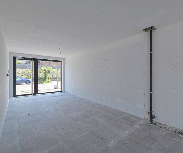 Handelspand +/- 86m² met mooie vitrine, ideaal voor kantoor of praktijk (GEEN HORECA) // CASCO opgeleverd // inrichting en afwerking vrij te bepalen // parkeerplaats in optie // privatief terras // kelder //