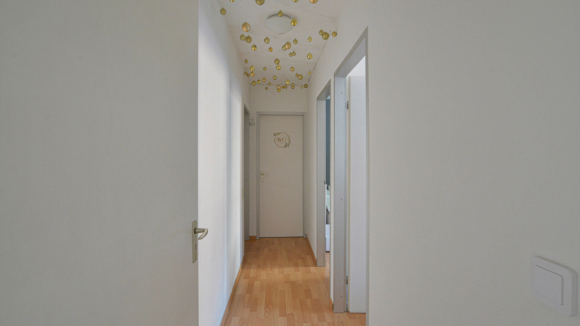 Inkomhal // lichtrijke woonkamer +/- 25m² met toegang tot de tuin georiënteerd op het ZUIDEN // open ingerichte keuken +/- 6,6m² (koelkast, diepvriezer, oven, inductiekookplaat, vaatwasser) // nachthal met apart toilet // twee slaapkamers +/- 12m² // badkamer met ligbad en lavabo //